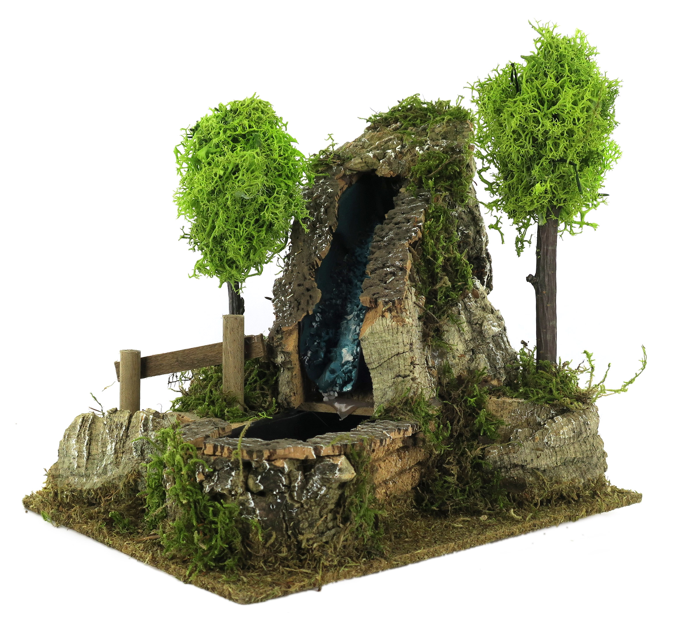 Cascata per Presepe con Acqua che Scorre, Legno e Sughero, Multicolore, 20x21x15 Centimetri