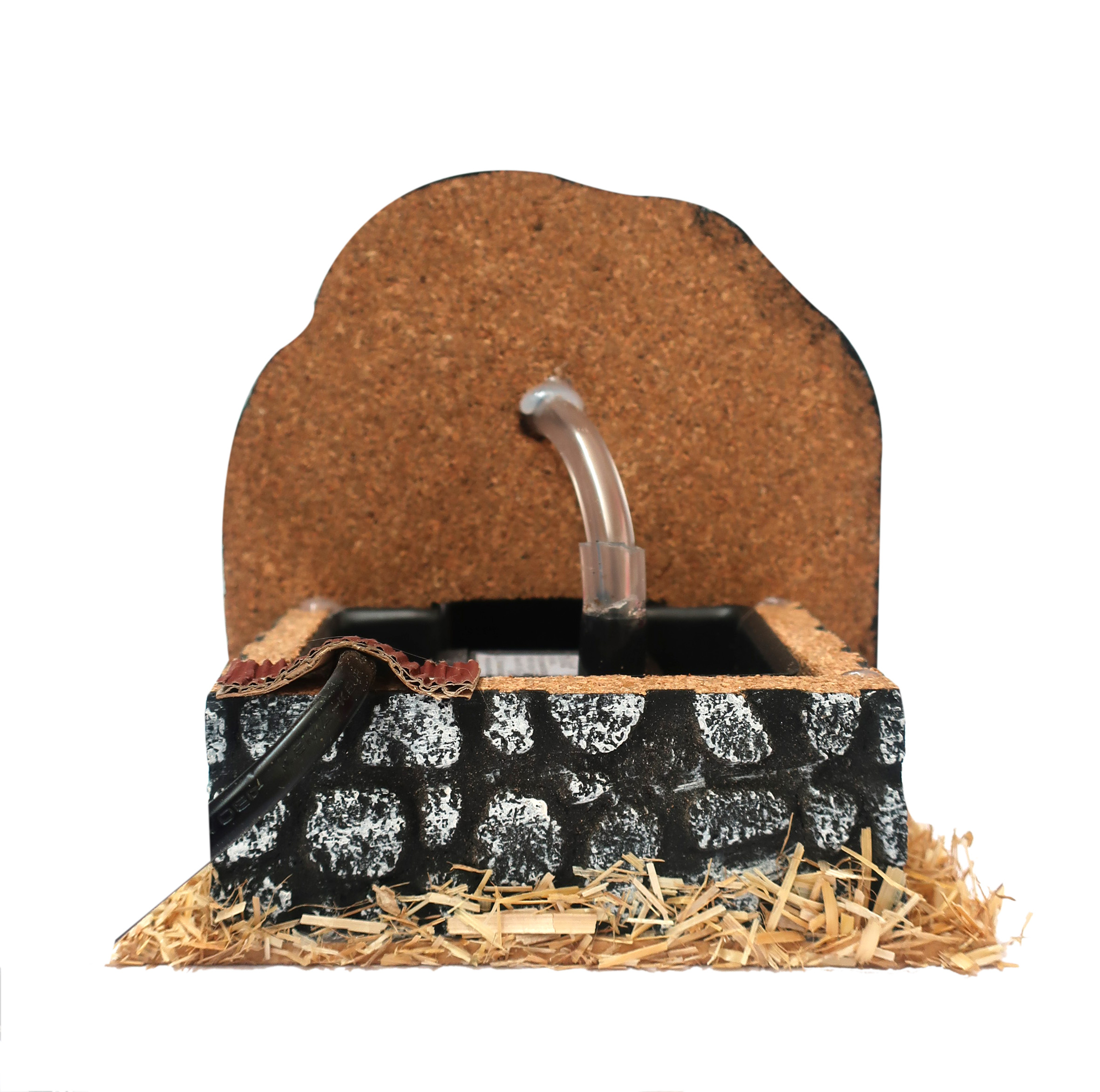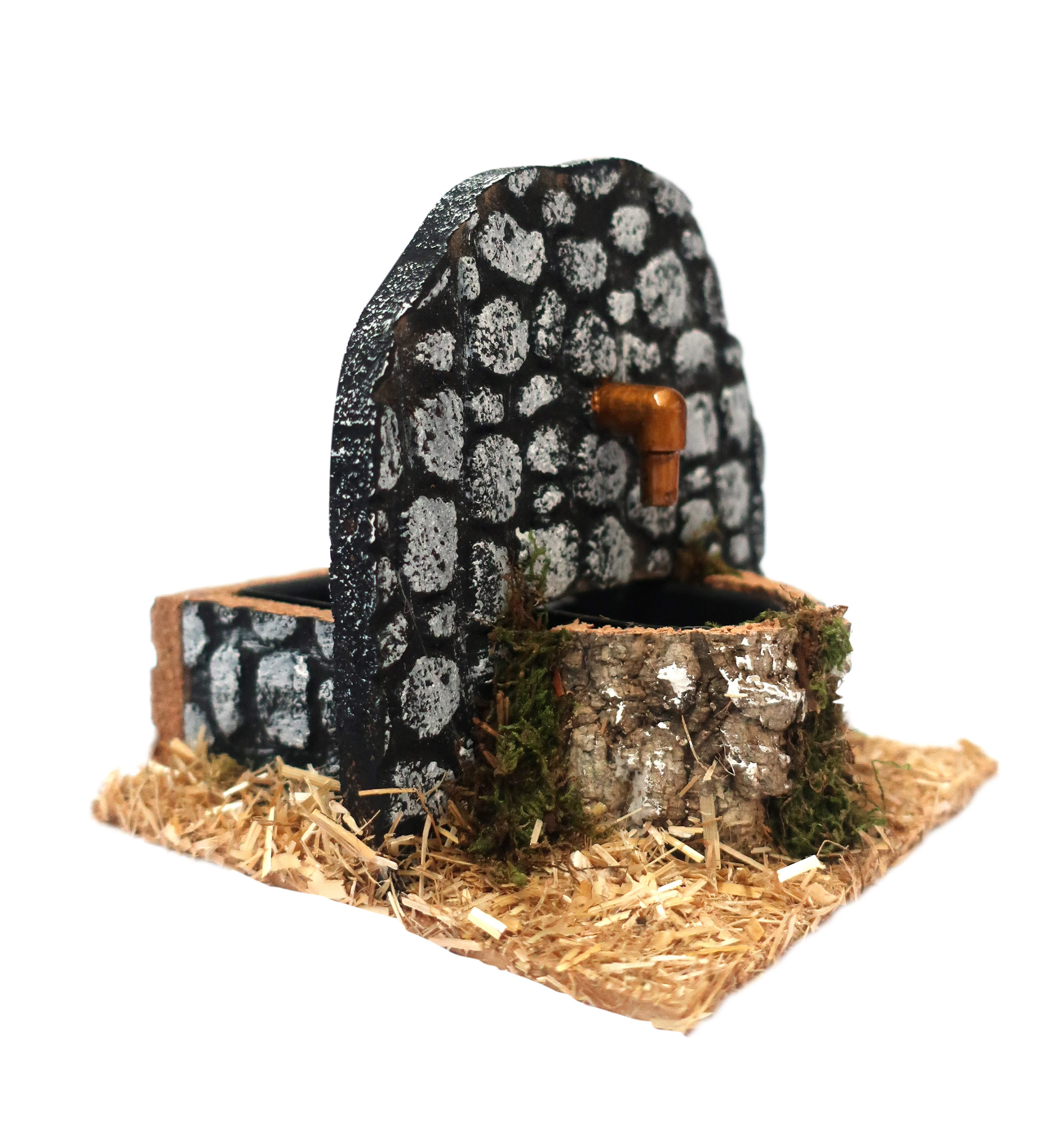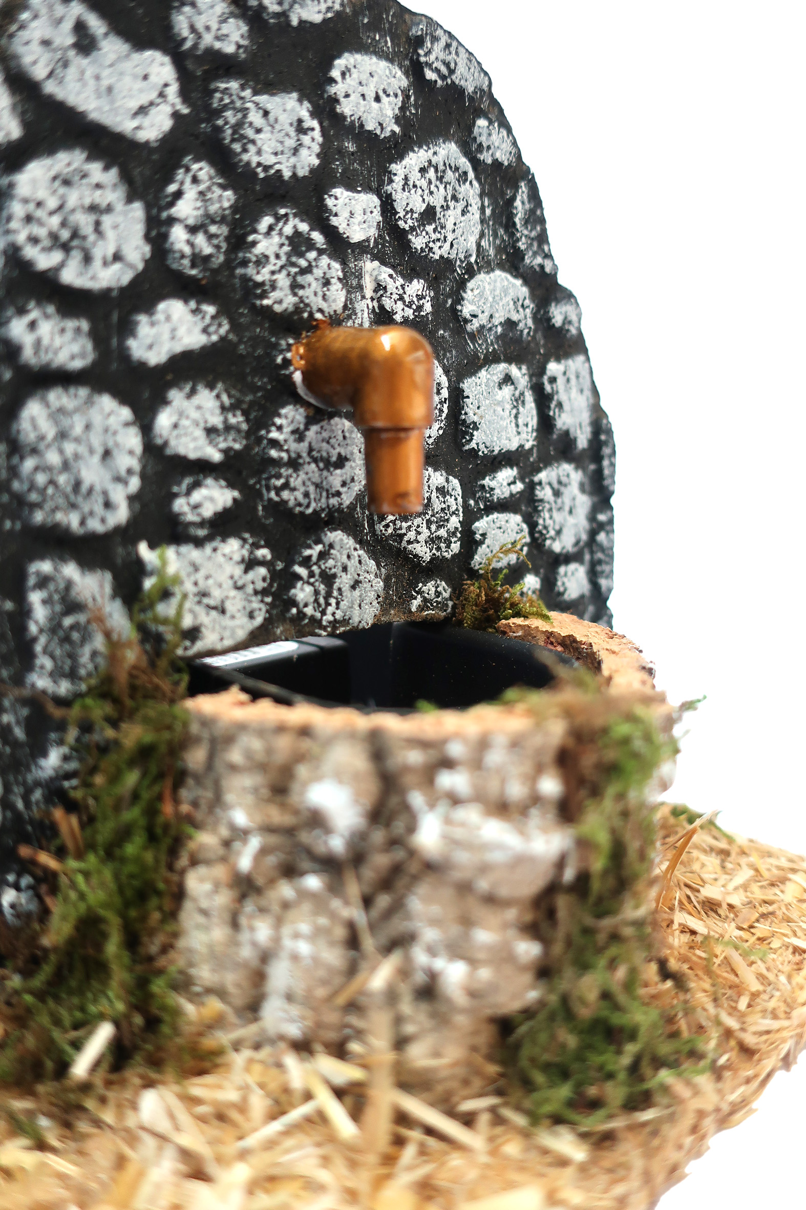 Accessori per presepe: Fontana elettrica con muro di petre scure (alimentazione elettrica 220 V).