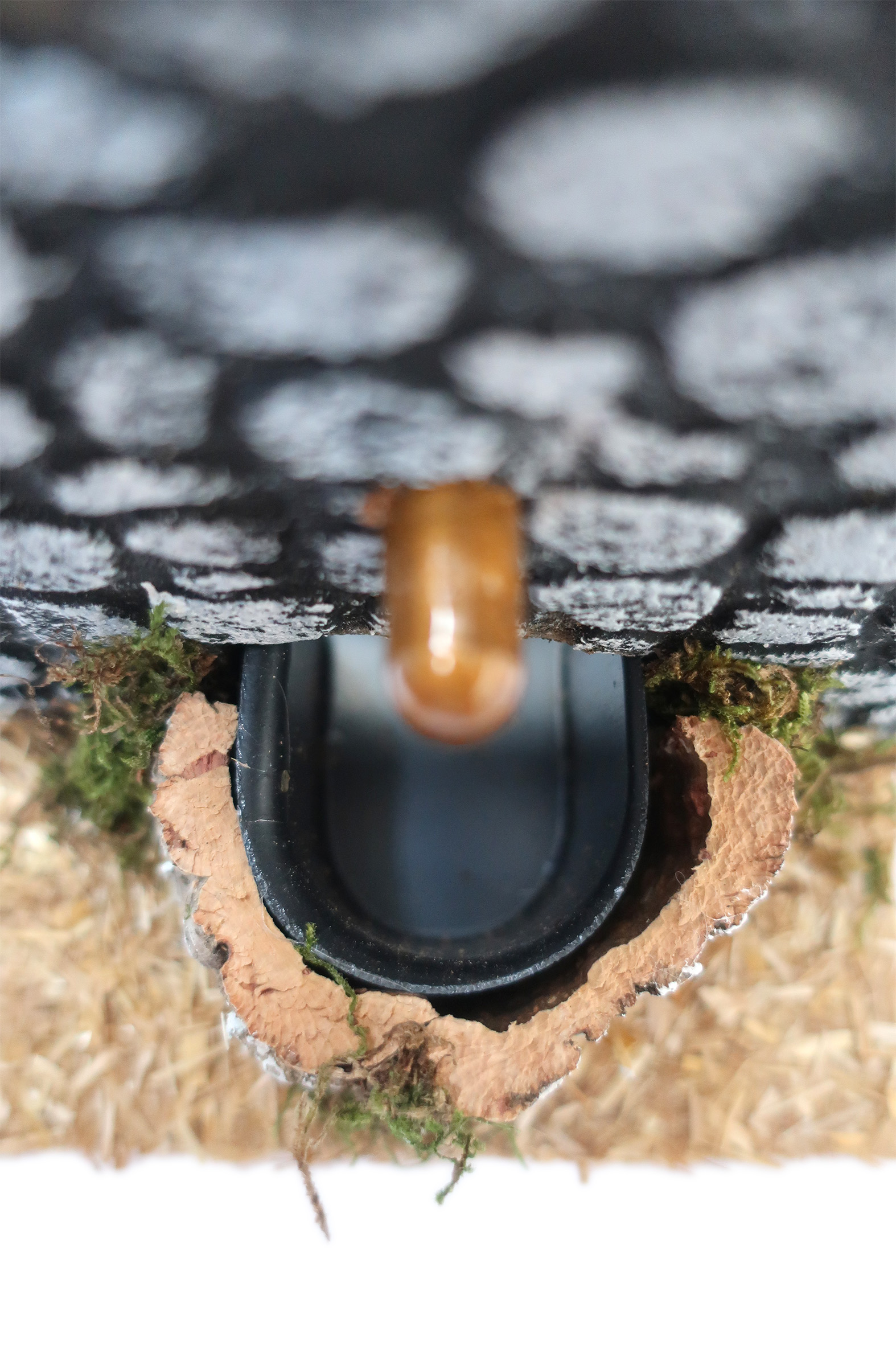 Fontana con Acqua che Scorre, Parete Scura con Pietre, Spina 220V, Legno, Nero, 13x13x13 Centimetri