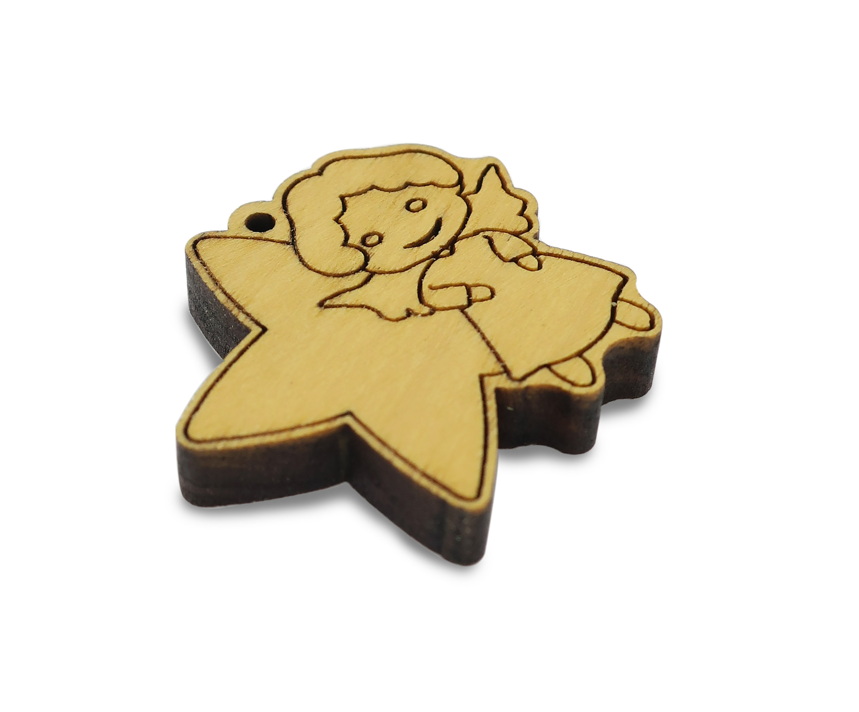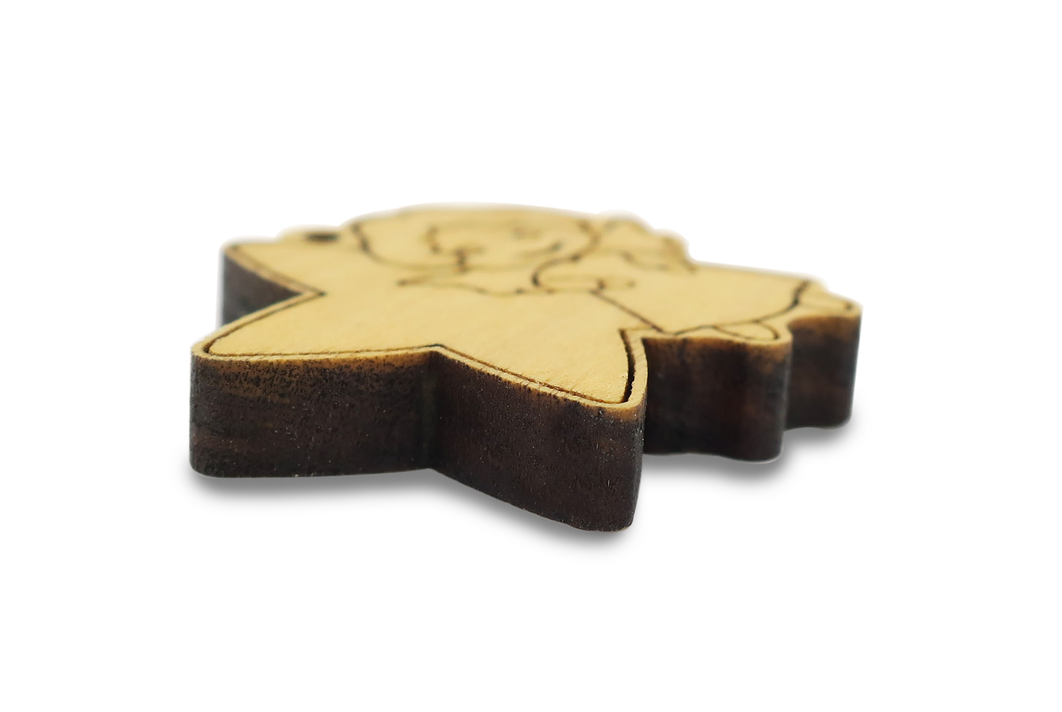 Ciondolo in legno d'ulivo sagomato raffigurante l'Angelo con la stella.
