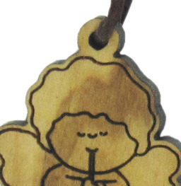 Ciondolo in legno d'ulivo sagomato raffigurante l'Angelo suonatore.