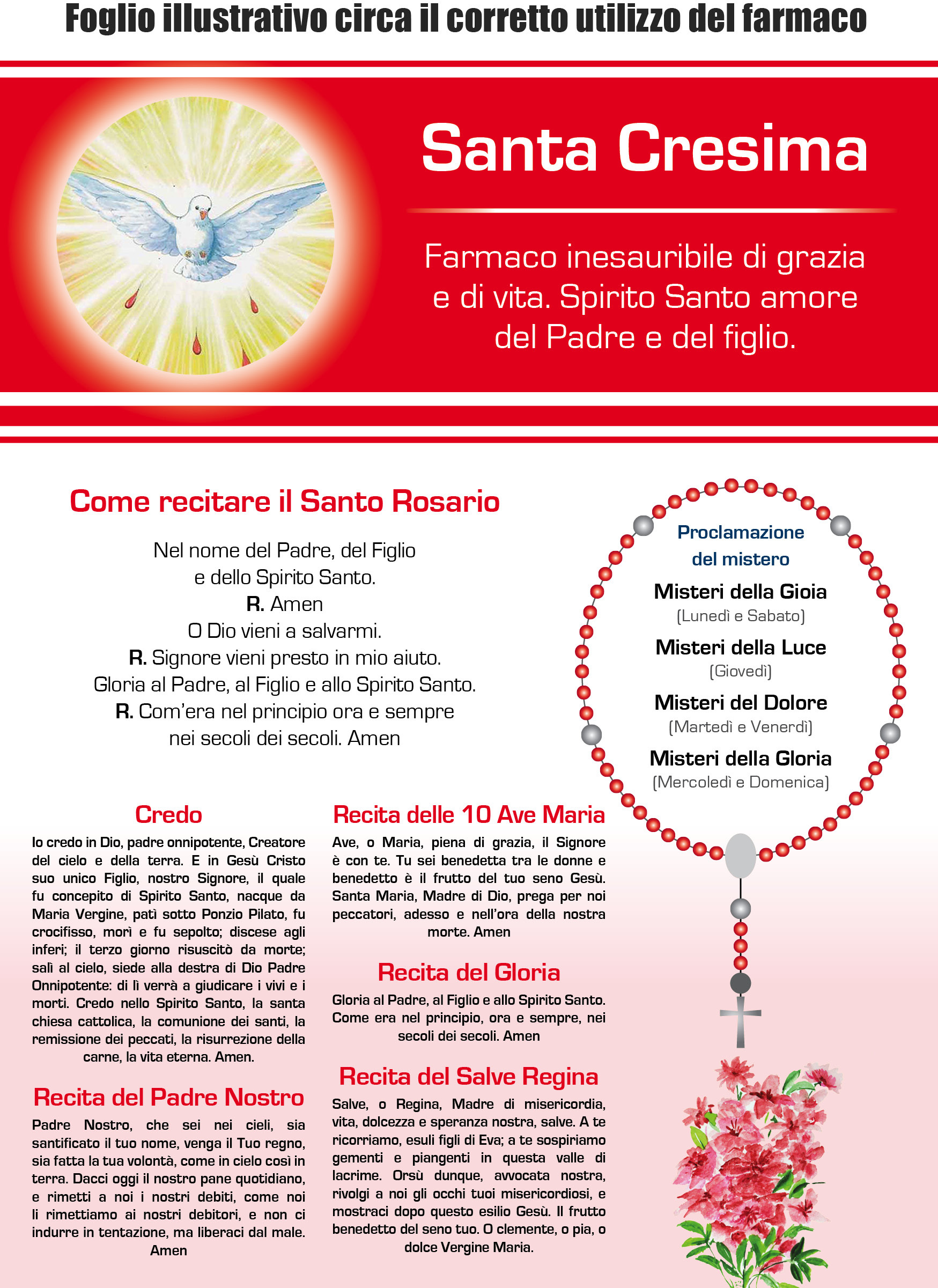 La scatolina ha esternamente l'immagine che rappresenta i simboli della Santa Cresima. Si presenta molto gradevole alla vista e simpatica all'utilizzo. Contiene un rosario con crociera che riporta il simbolo della Santa Cresima, inoltre ha all'interno un foglietto che aiuta a recitare con cura il Santo Rosario. Ottimo regalo per la CRESIMA. Totalmente made in Italy.