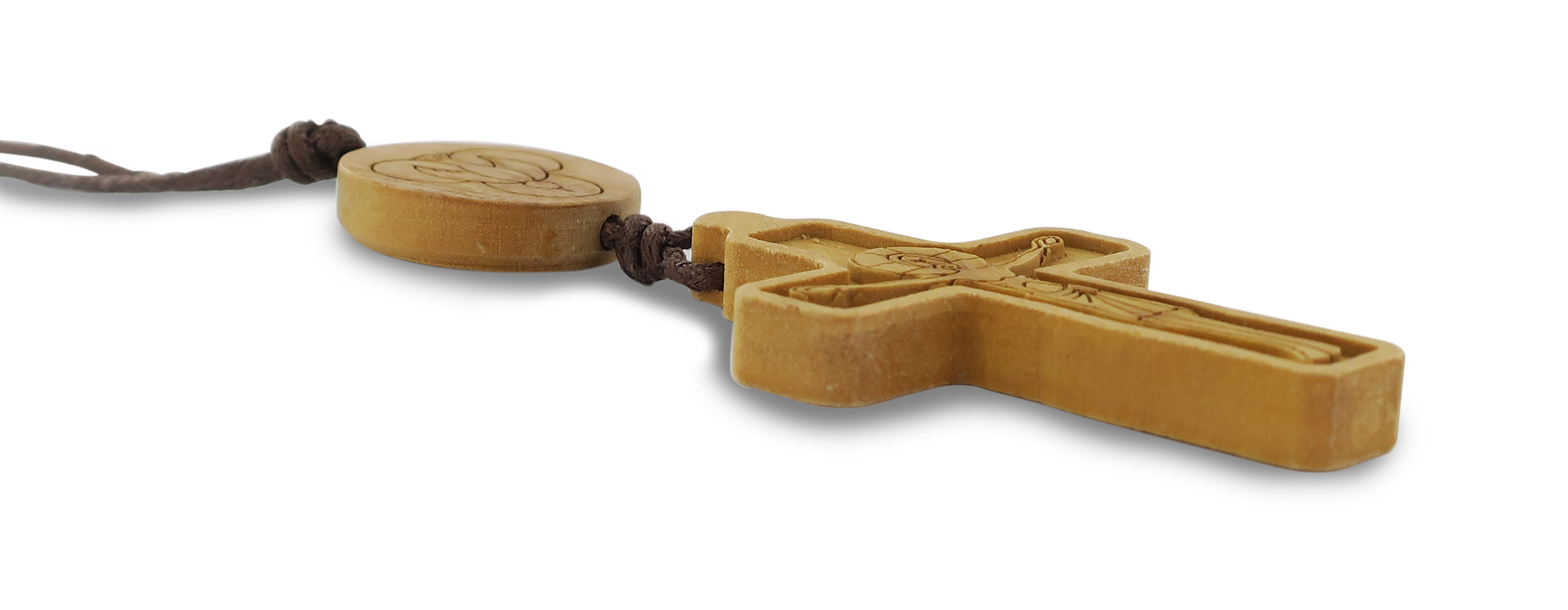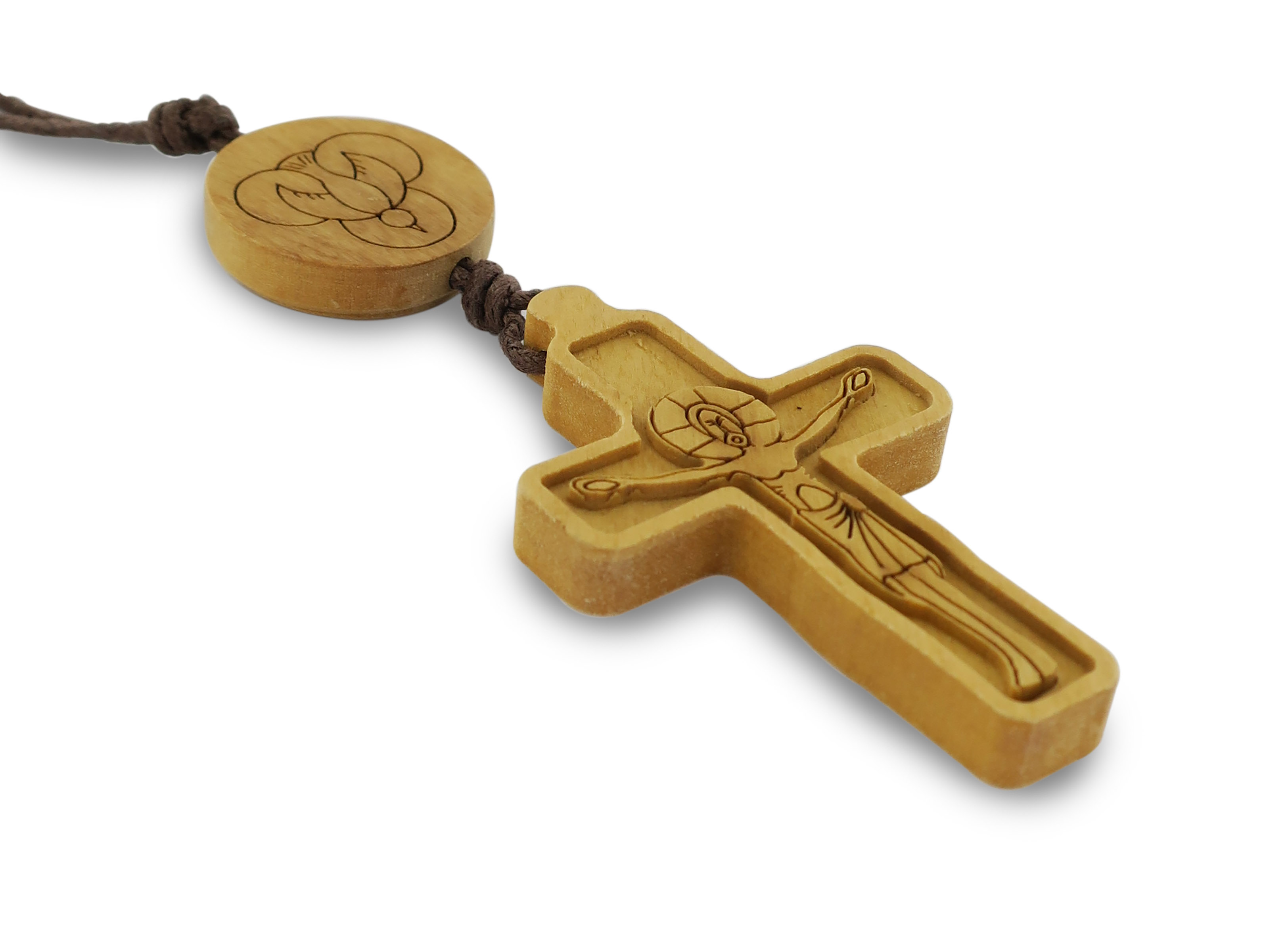 Croce con medaglione in legno d'ulivo, da 9,4 cm.