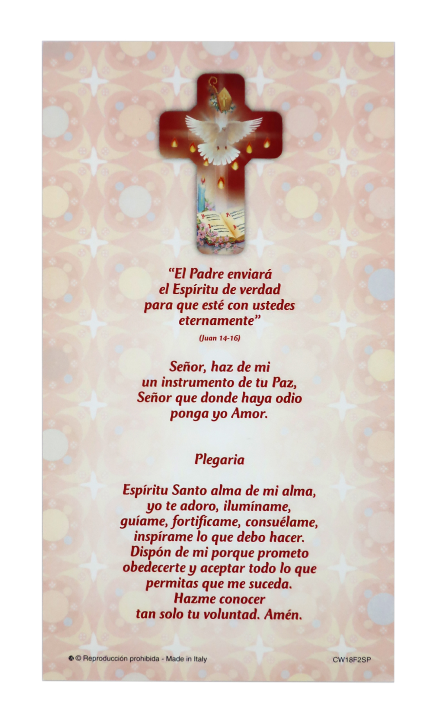 Croce Spirito Santo con certificato e preghiera in spagnolo