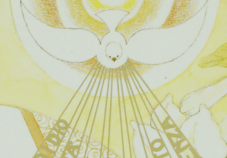 Stampa su legno raffigurante i sette doni dello Spirito Santo.