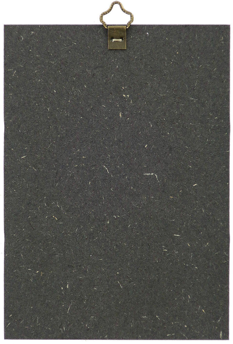 L'immagine è una stampa incollata su legno con lavorazione in oro e argento a caldo.