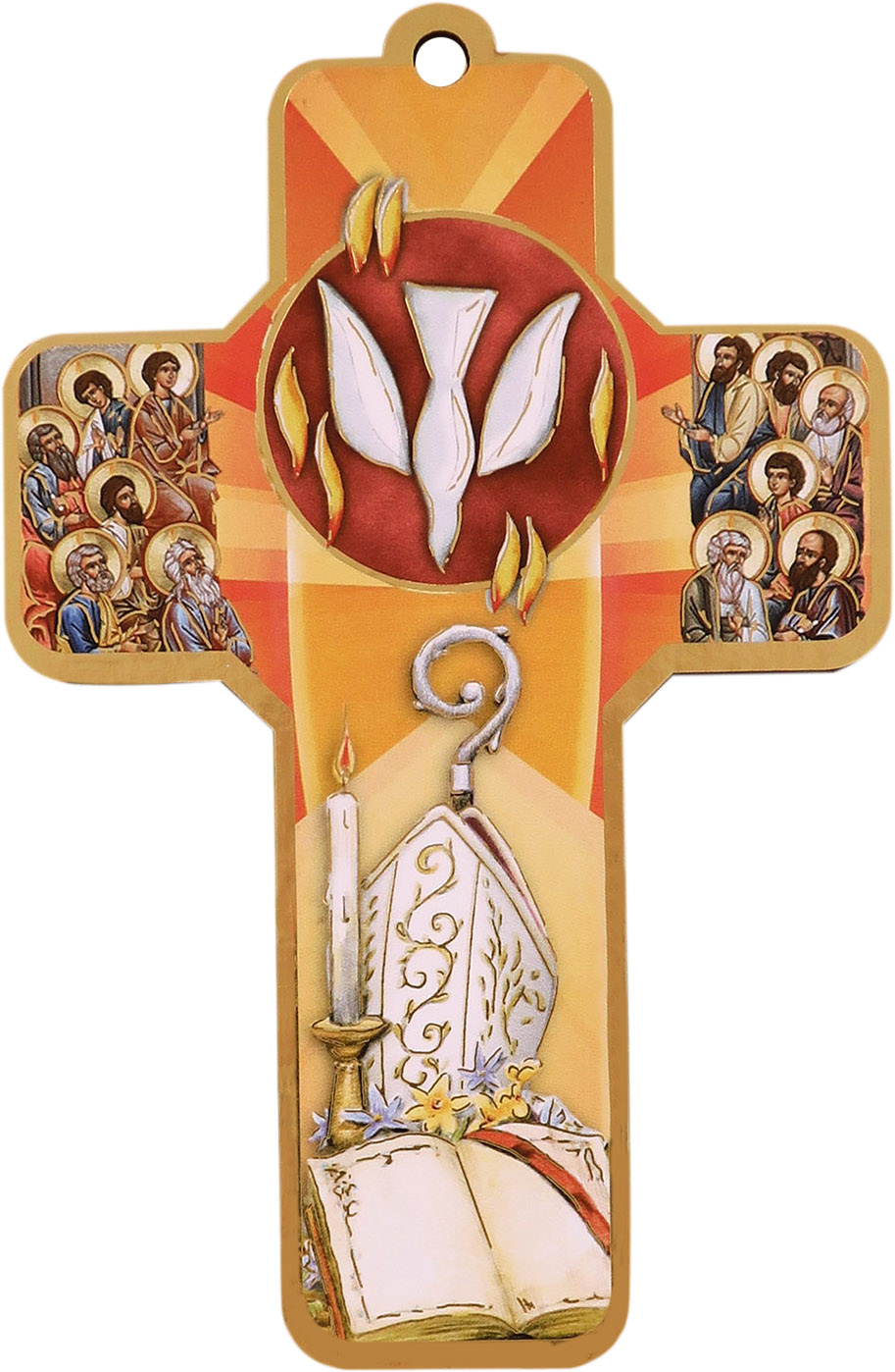 Questa busta contiene cartoncino che ricorda il Sacramento della Cresima unito ad esso vi è una croce di cm 9x13, anch'essa che ricorda questo Sacramento.