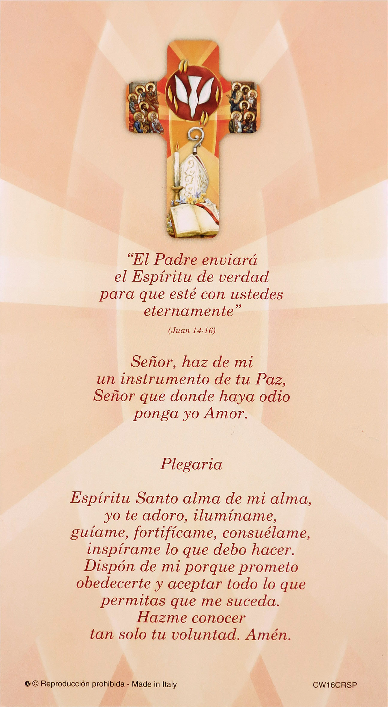 Questa busta contiene cartoncino che ricorda il Sacramento della Cresima unito ad esso vi è una croce di cm 9x13, anch'essa che ricorda questo Sacramento.
