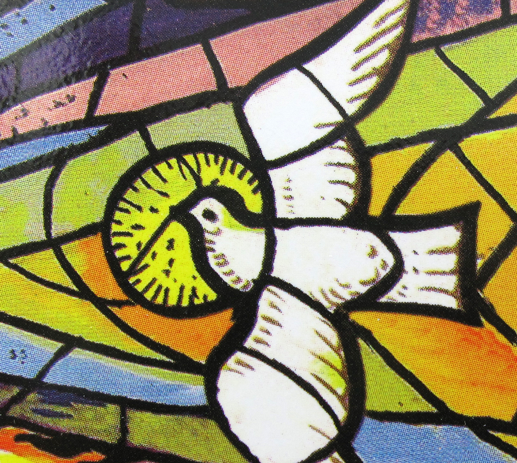 Immagine plastificata con raffigurata da un lato la discesa dello Spirito Santo e dall'altra parte la seguente Preghiera: