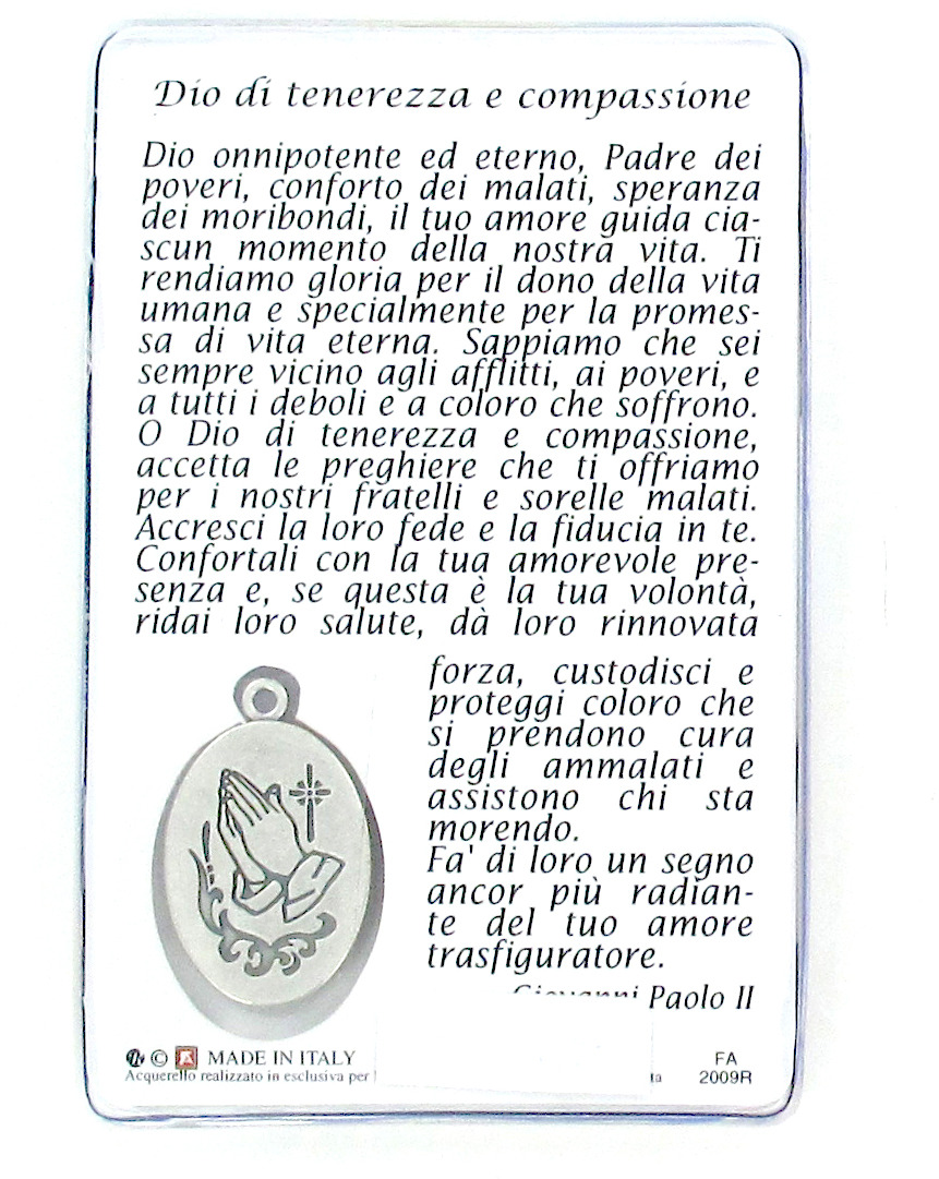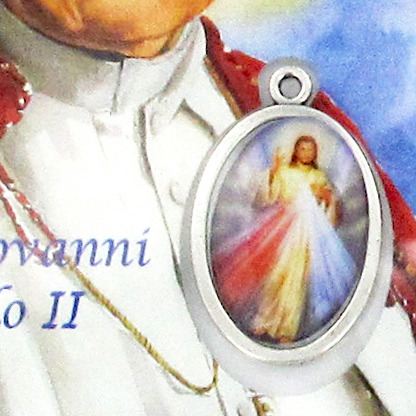 Card San Giovanni Paolo II con medaglia resinata Gesù Misericordioso cm 5,5 x 8,5