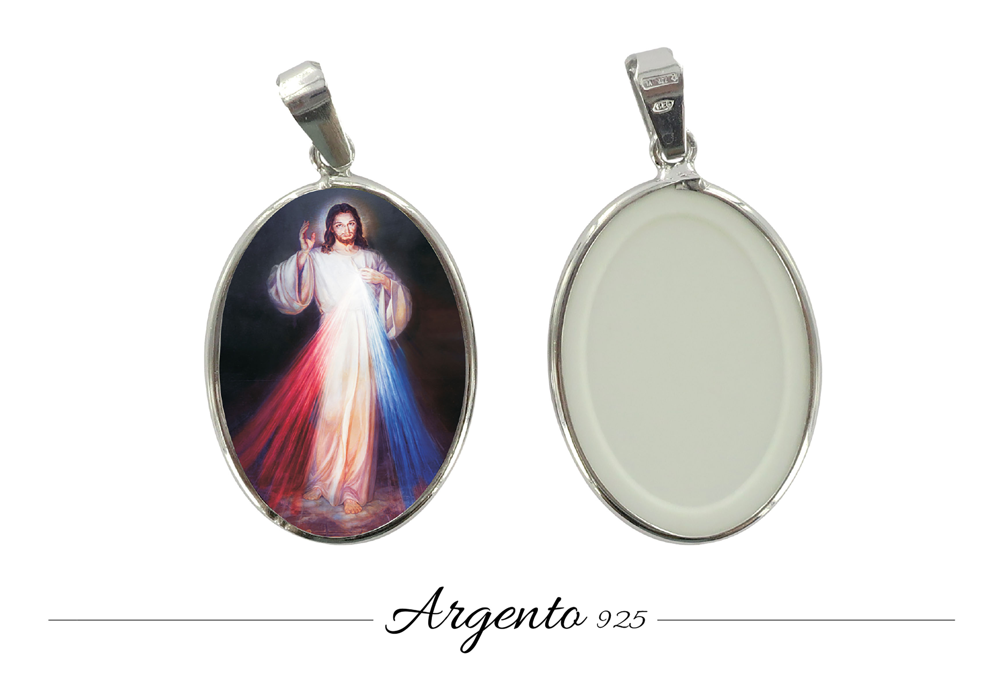 Medaglia Gesù Misericordioso in argento 925 e porcellana