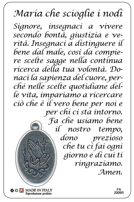 Card di Maria che scioglie i Nodi con medaglia resinata di Maria che scioglie i Nodi cm 5,5 x 8,5