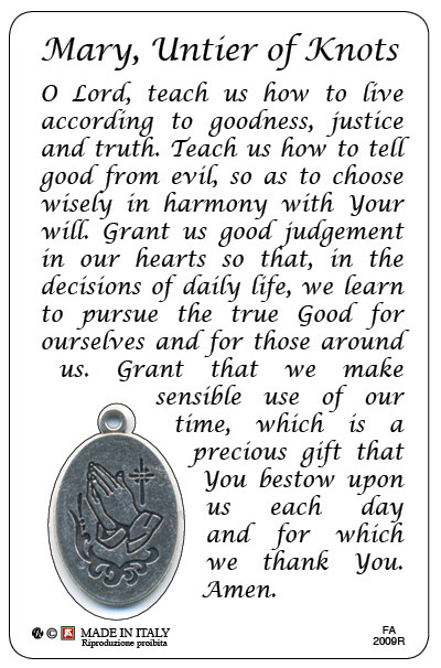 Card Maria che scioglie i nodi con medaglia - 5,5 x 8,5 cm - Inglese