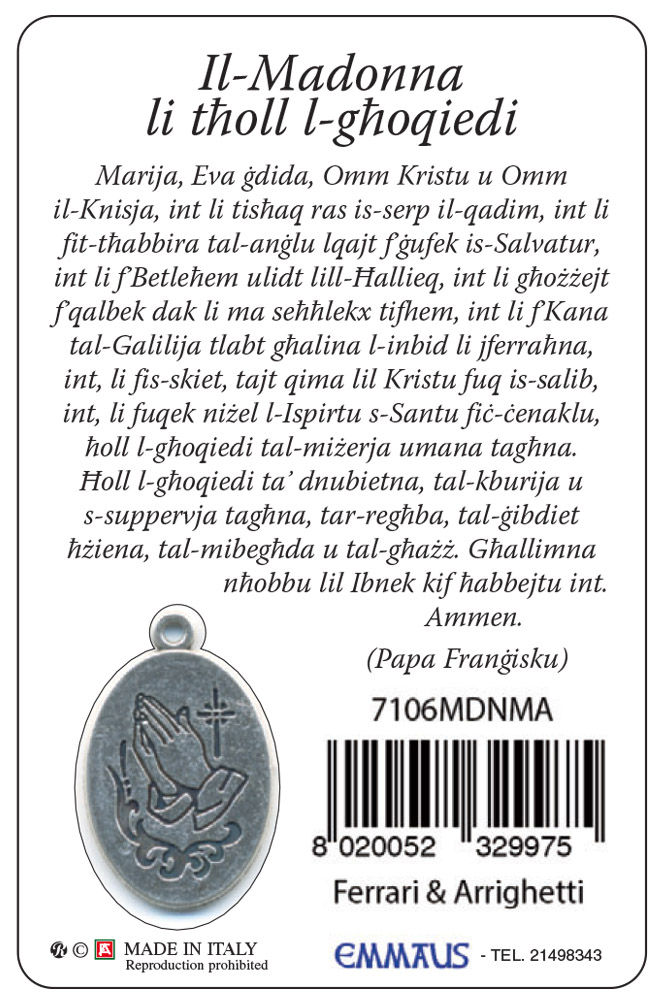 Card Maria che scioglie i nodi con medaglia - 5,5 x 8,5 cm - Maltese