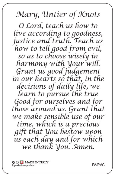 Immagine plastificata in pvc di Maria che scioglie i Nodi cm 5,5 x 8,5 - in versione Inglese