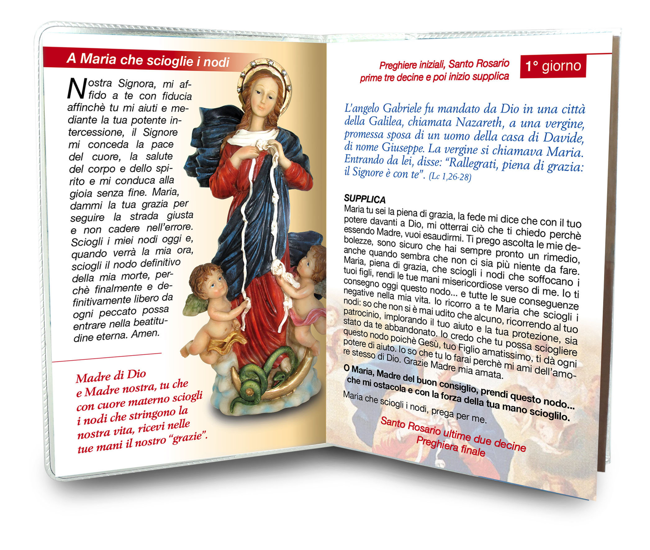 Nell'interno vi sono le invocazioni della novena a Maria che scioglie i nodi e una preghiera a lei dedicata.