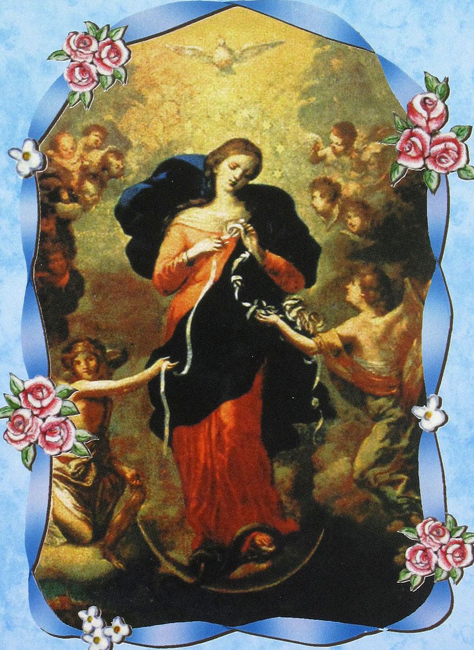 Nell'interno vi sono le invocazioni della novena a Maria che scioglie i nodi e una preghiera a lei dedicata.