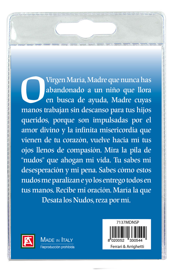 Medaglia Maria che scioglie i nodi con laccio e preghiera in spagnolo