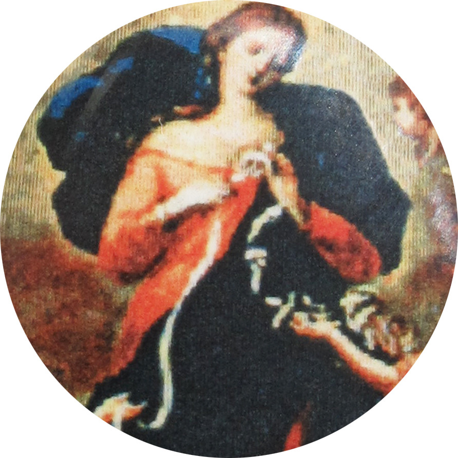 La medaglietta è in porcellana con stampata una immagine rappresentante Maria che scioglie i nodi.