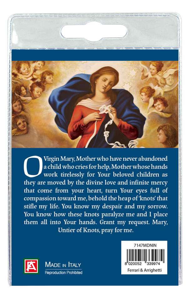 Il blister si presenta con all'interno un cartoncino, rappresentante Maria che scioglie i nodi