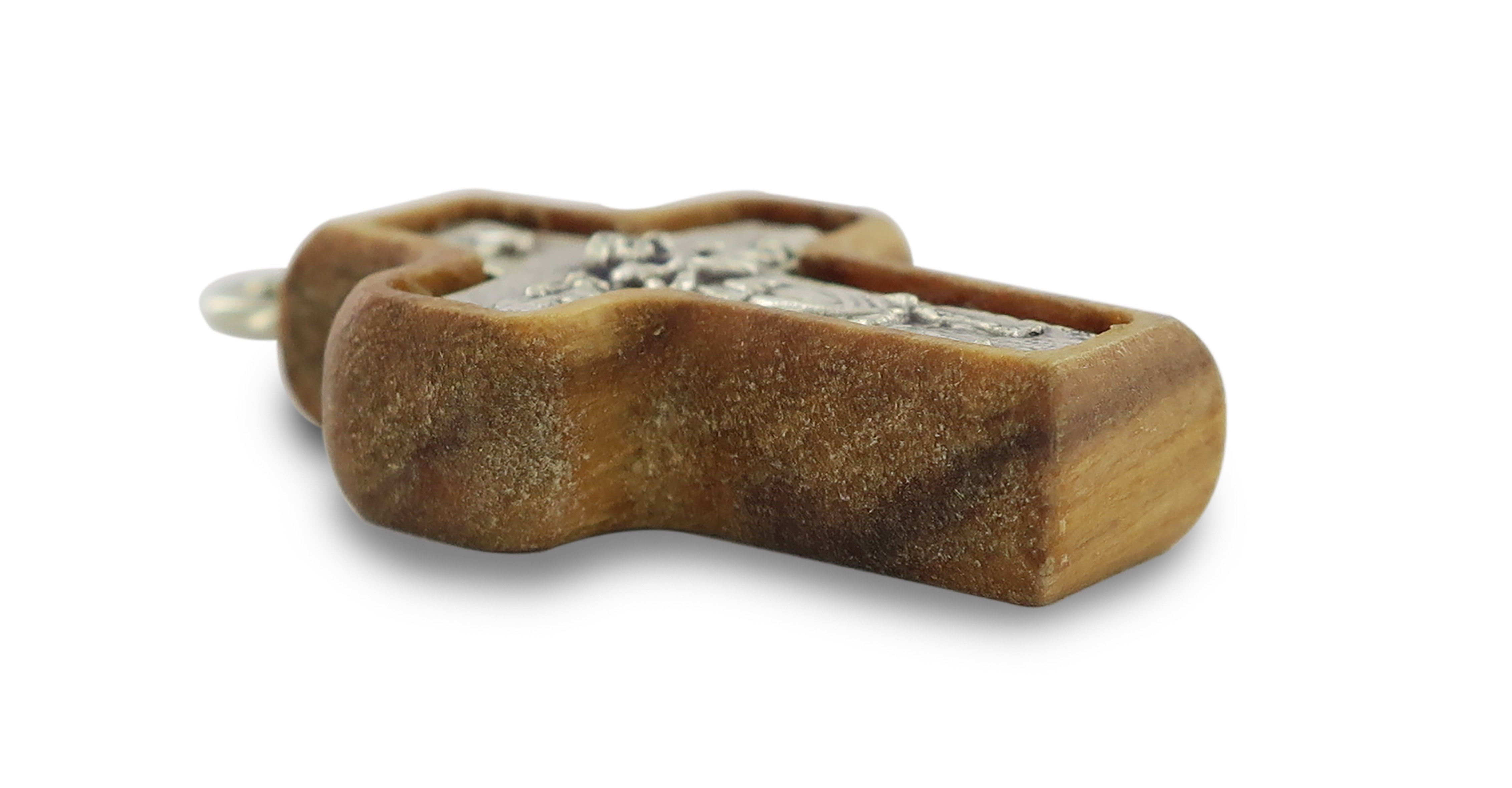 Croce Papa Francesco in metallo su legno ulivo cm 2 con laccio