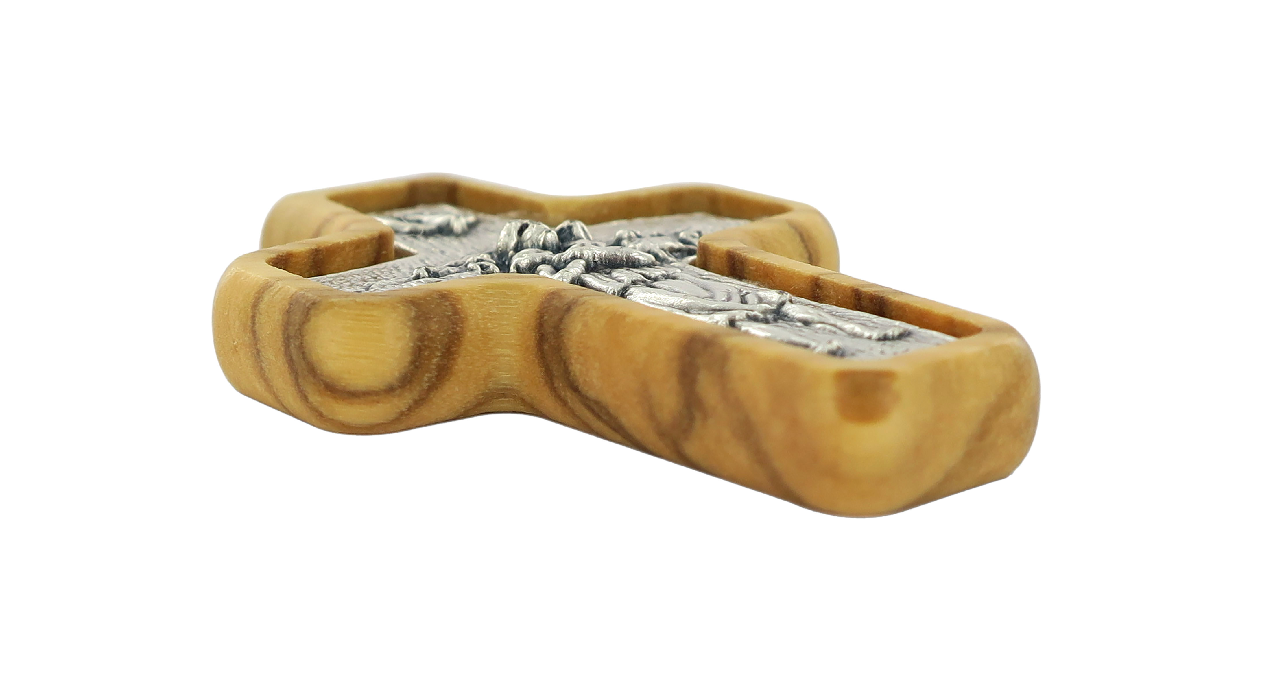 Croce Papa Francesco in metallo su legno ulivo cm 4 con laccio