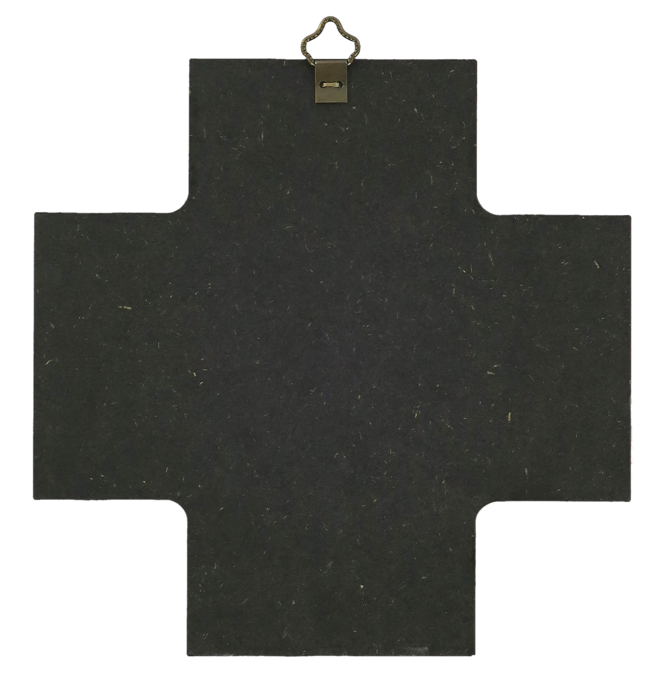La croce può essere appesa grazie al gancio che c'è sul retro.