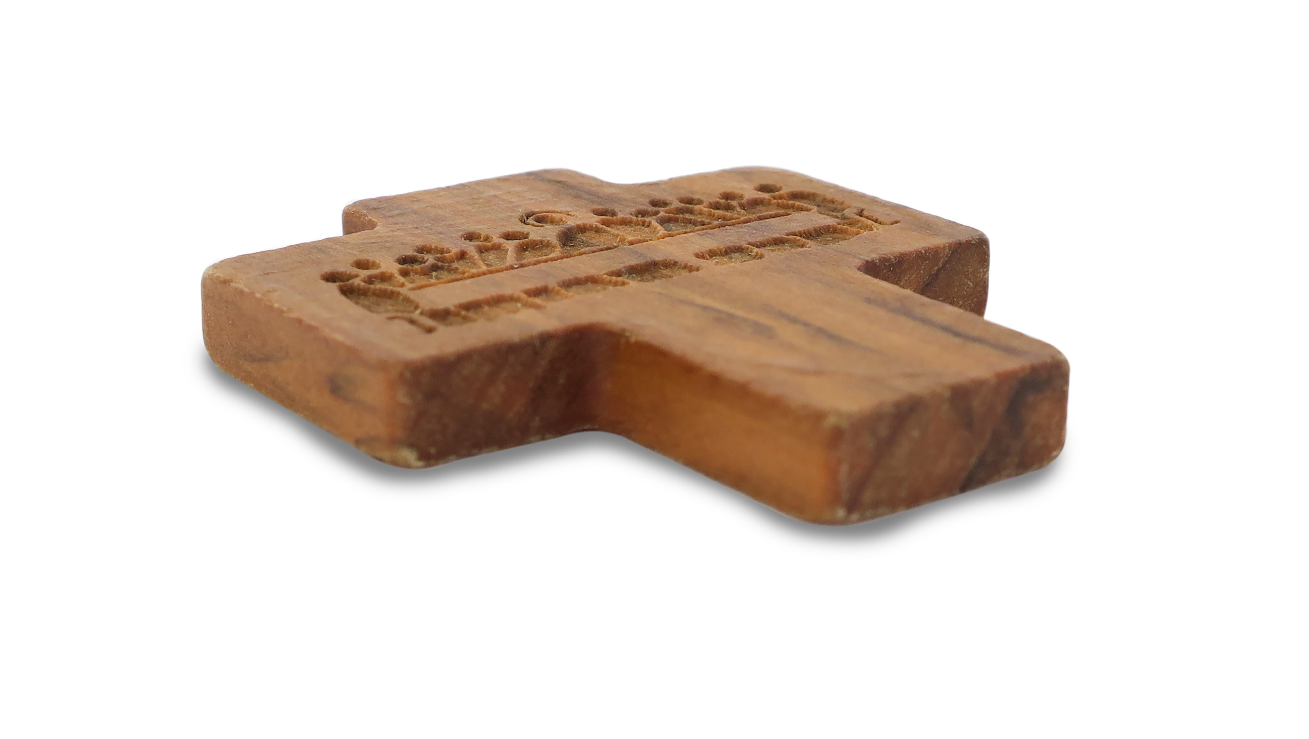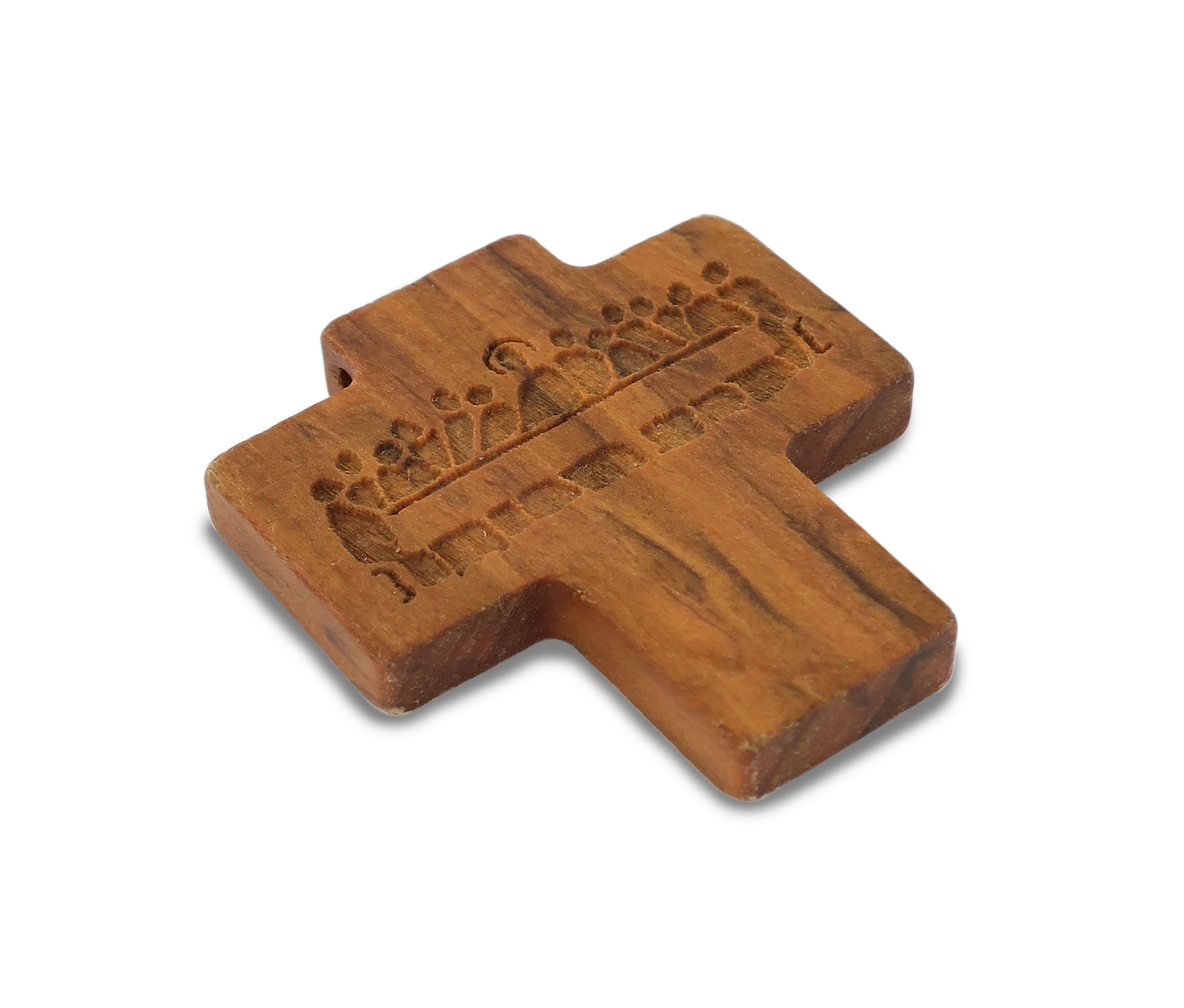 Croce in ulivo di cm. 4,5 con incisa l'Ultima Cena. Viene consegnato con il suo cordino.