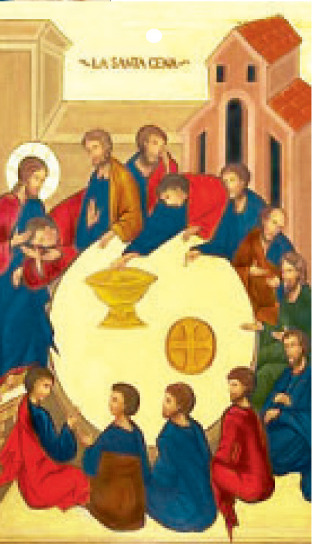 Piccola icona raffigurante l'ultima cena con certificato in cartoncino da compilare.