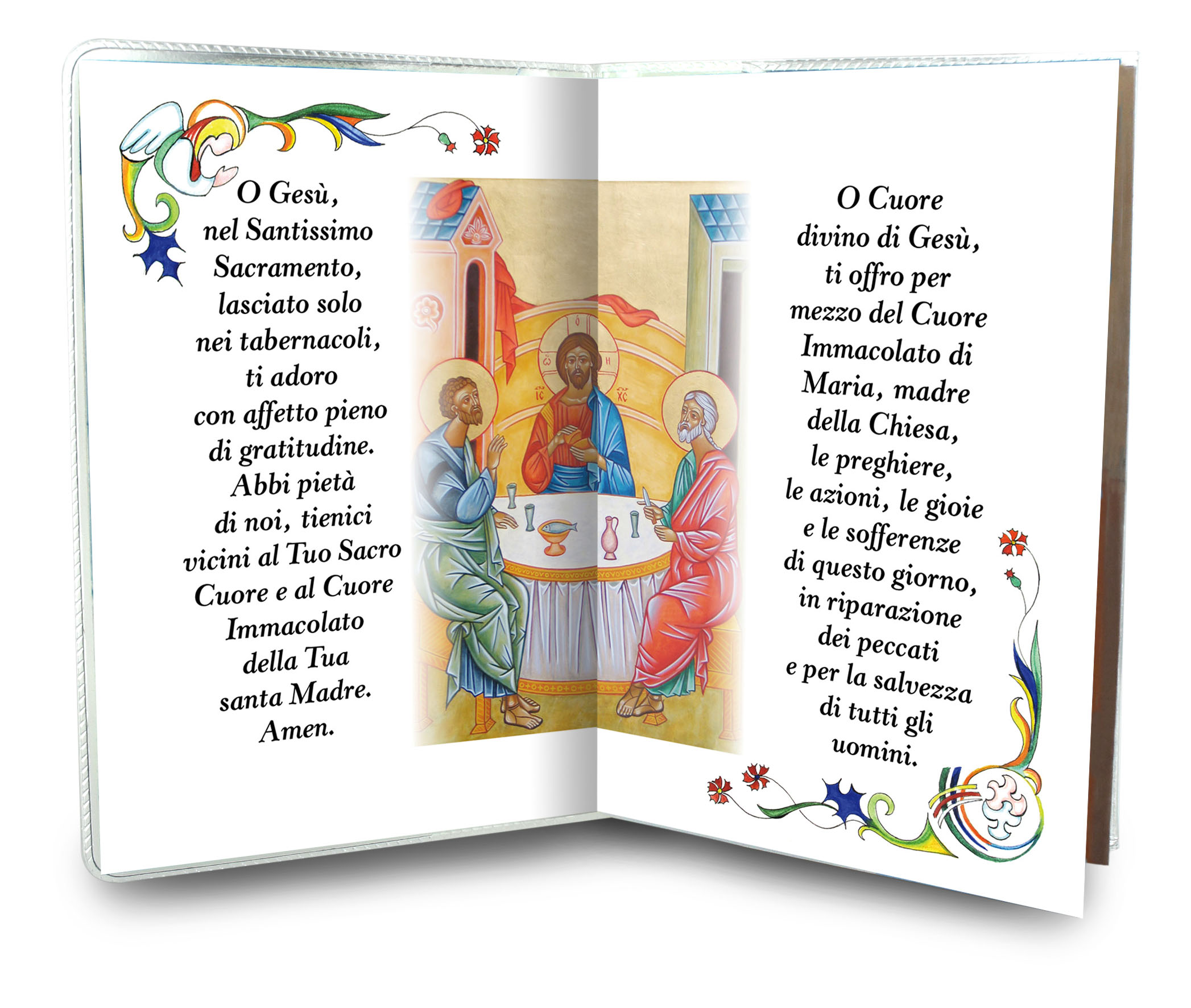 Il libretto è destinato a comunicandi di lingua italiana e si presenta rivestito da una copertina in plastica trasparente, dotata anche di scomparto in cui è contenuta una catenina a perline (diametro di 2 mm). La collanina ha una medaglietta dell'eucarestia, che raffigura la scena in cui Gesù è a tavola coi discepoli con pane e vino. Nell'interno del libretto vi sono delle pagine in cui si spiega il significato della Prima Comunione. Vi è pubblicata anche una preghiera. Sia sul retro, sia nella sezione dove c'è la medaglia, è pubblicato il Padre Nostro. La catenina ha una circonferenza di 58 cm e non può essere slacciata: va infilata dalla testa.