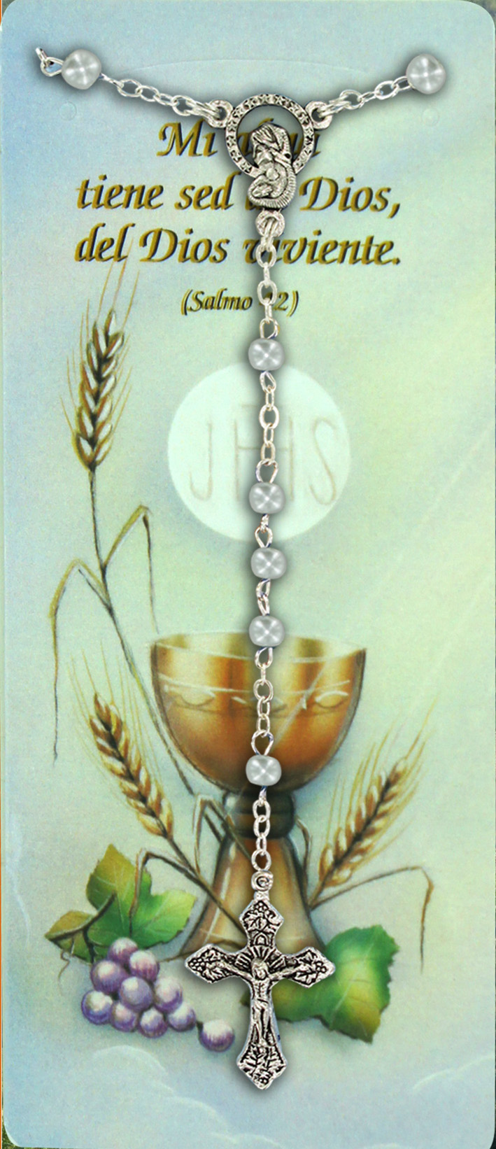Il libretto, adatto a fedeli di lingua spagnola, si presenta rivestito da una copertina in plastica trasparente, dotata anche di scomparto in cui è contenuto il rosario dai grani tipo perlina (diametro di 4 mm). Nell'interno vi sono delle pagine da completare e personalizzare con la foto e i dati personali della persona che riceve il sacramento della Prima Comunione. Uno spazio prevede anche la scrittura dei nomi di amici e parenti che hanno partecipato alla celebrazione della Prima Comunione. Il libretto riporta anche illustrazioni con i simboli di questo importante Sacramento (calice, uva, spighe di grano) e due Salmi.