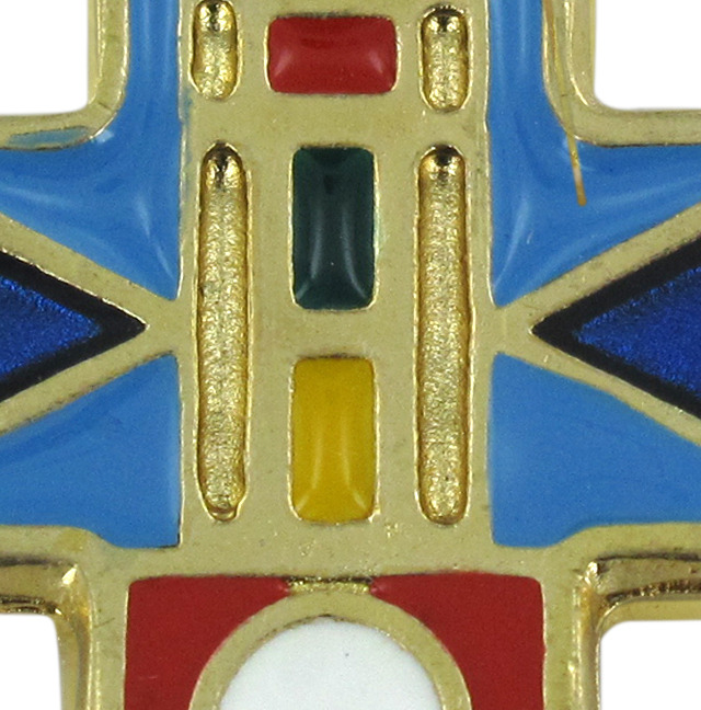 Croce in metallo dorato e smalto blu con cordoncino