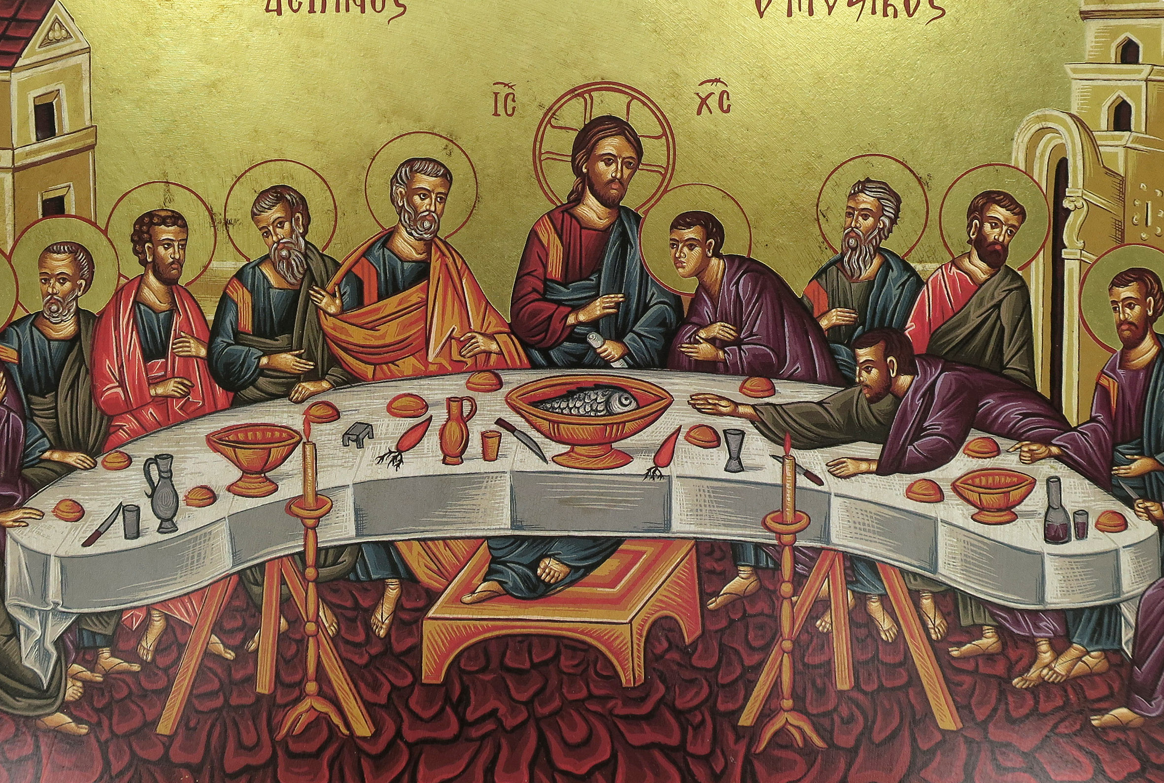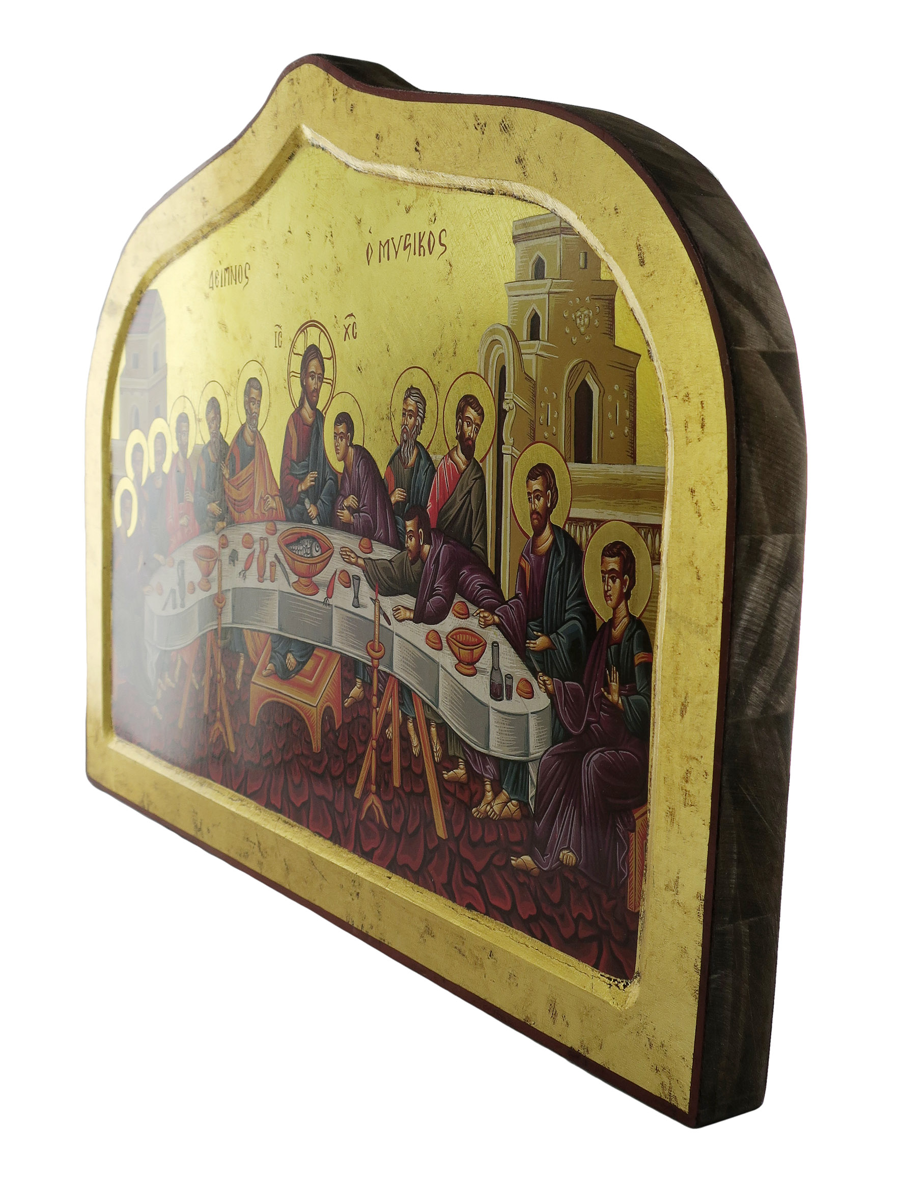 L'Ultima Cena è strettamente collegata al concetto di Eucarestia, ed è stata raccontata da tutti e 4 gli evangelisti nei seguenti passi del Nuovo Testamento: Matteo 26,20-30 / Marco 14,17-26 / Luca 22,14-39 / Giovanni 13,1-20. Per tale ragione, questa icona è particolarmente consigliata come regalo per Comunioni.