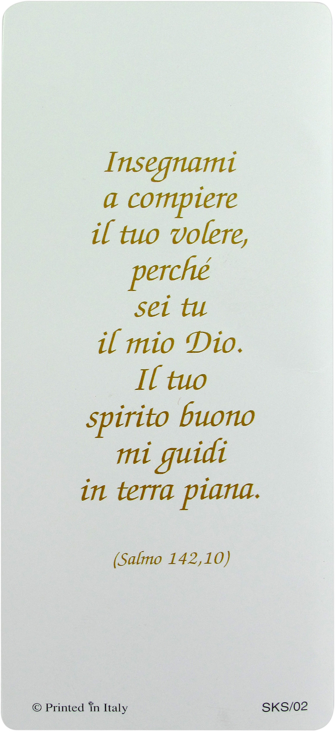 Cartoncino ricordo della Comunione con salmo e rosario. Il rosario è realizzato con grani tondi tipo perlina il cui diametro è di 4 mm. La legatura è in metallo argentato. Articolo prodotto in Italia.