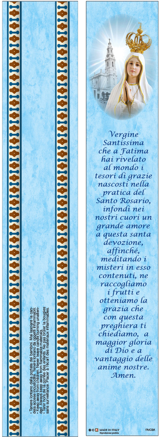 Candela in blister con immagine della Madonna di Fatima cm 4,5 x 25,5