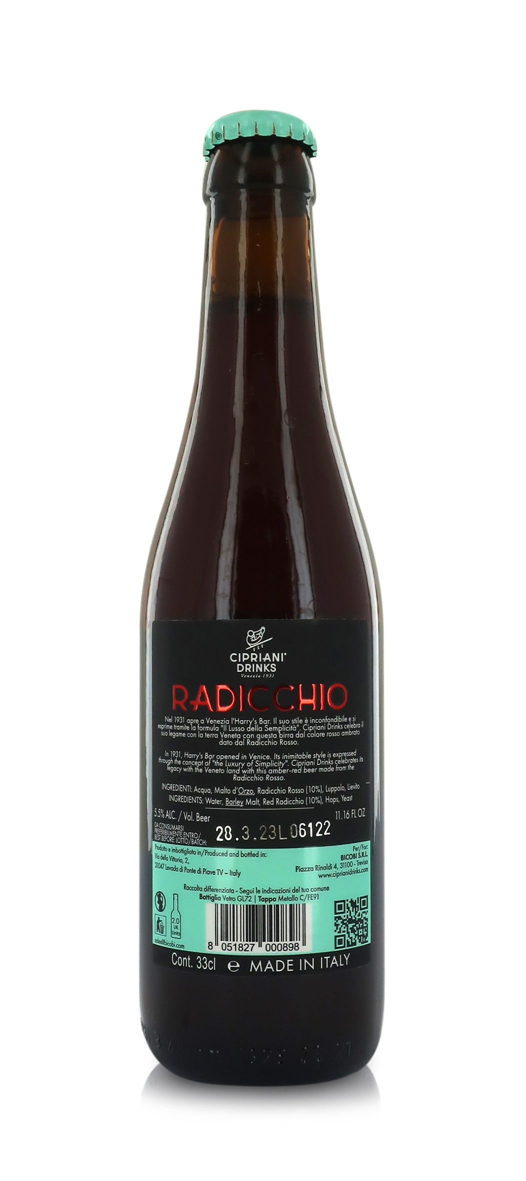 Cipriani Birra al Radicchio, Birra Italiana Ottenuta da Radicchio di Treviso IGP, con Note di Caramello e Sentori Vegetali, Birra dalla Leggera Effervescenza e Gusto Erbaceo, 33 Cl