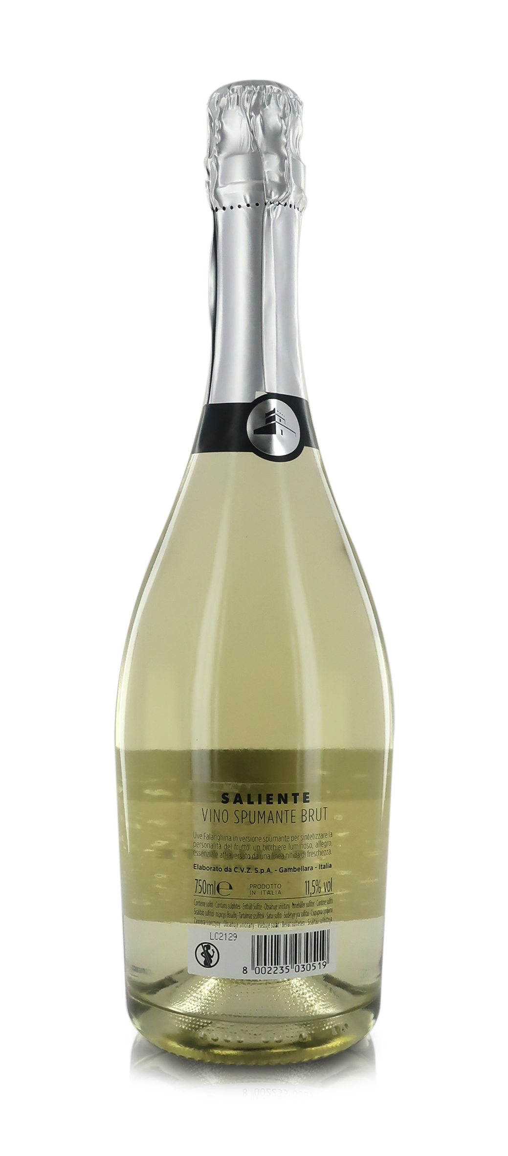 Vino Spumante Brut pugliese Saliente, NV, 6 bottiglie da 750 ml. Ottenuto con metodo charmat da uve Falanghina, Saliente è una bollicina di grande freschezza e mineralità, che cattura la luce cristallina del Salento per esaltare uno spettro di fragranze e aromi inediti. Stupisce per la piacevole effervescenza, che ricorda la schiuma del mare, e per quella vena sapida che lo rende assolutamente originale. Le uve Falanghina, raccolte al giusto grado di maturazione zuccherina e di acidità, fanno ottenere un vino base fresco, minerale e sapido. Dopo un periodo di affinamento sui lieviti di circa 3-4 mesi, il vino base viene spumantizzato con metodo charmat, che esalta gli aromi varietali del vitigno, con un effetto d'intensa freschezza. / Classificazione: Spumante Brut / Zona di produzione: Prov. di Brindisi / Uve: 100% Falanghina / Colore: giallo paglierino scarico con riflessi verdognoli. Perlage fine e persistente. / Profumo: sentori di mela, fiori bianchi, finocchio selvatico e origano fresco. / Sapore: delicato, equilibrato e di grande freschezza, con note di frutta a pasta bianca croccante. / Abbinamenti: ideale come aperitivo, accompagna bene antipasti di frutti di mare e piatti mediterranei delicati a base di pesce. CONTIENE SOLFITI. ATTENZIONE: EVENTUALE INDICAZIONE DI ANNATA IN TESTI E/O FOTO È MERAMENTE INDICATIVA; L'ANNATA INVIATA, SOGGETTA A DISPONIBILITÀ, POTRÀ VARIARE DA QUELLA IN FOTO O NEI TESTI, SENZA QUESTO RAPPRESENTARE UN ERRORE O UN DIFETTO DELL'ORDINE. Masseria Altemura è situata nel cuore della penisola salentina, a metà strada tra lo Ionio e l’Adriatico, in una terra dal carattere mediterraneo, dove luce, vento e mare si fondono in un’unica alchimia. La tenuta, che si estende all’interno del territorio di produzione del DOC Primitivo di Manduria, in prov. di Brindisi, include un’antica Masseria del XVII secolo e una cantina contemporanea, circondate dal verde di vigneti e uliveti.