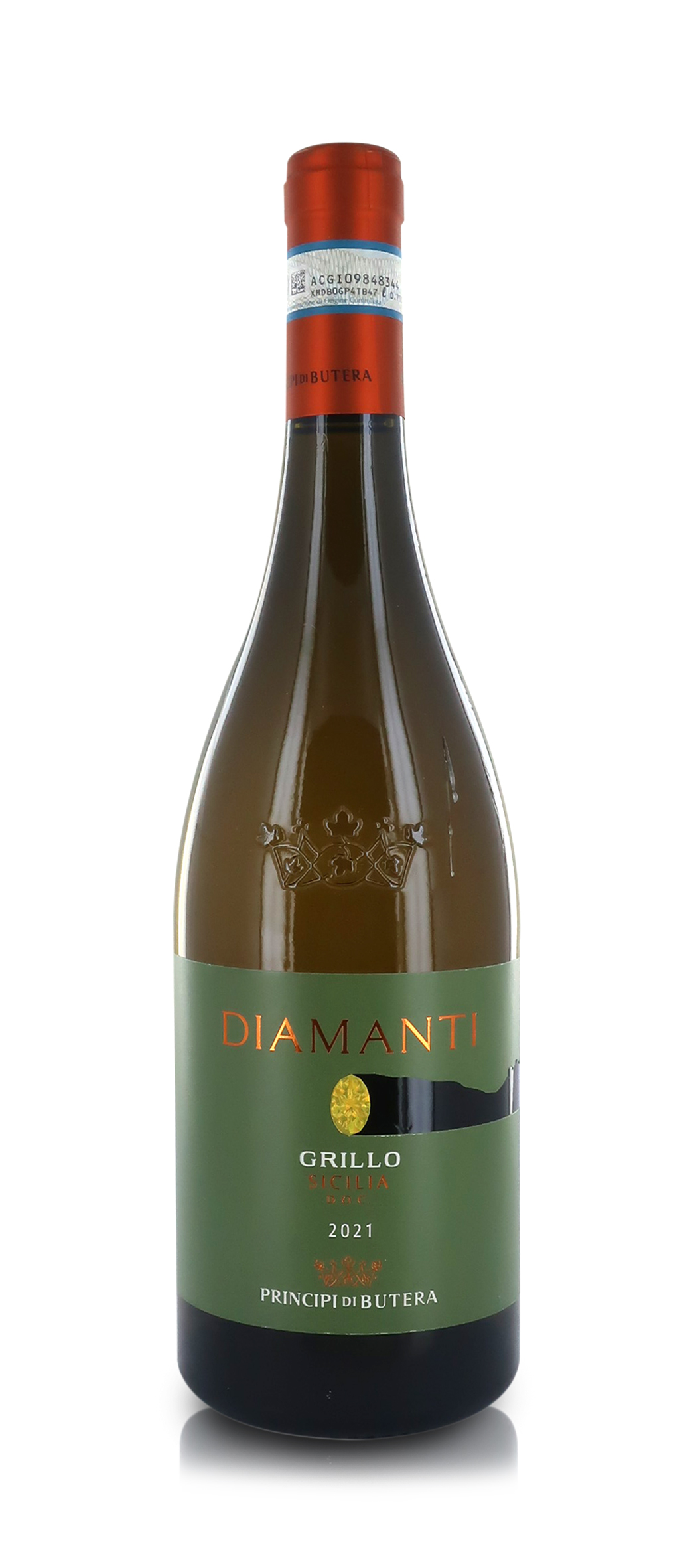 Dalle terre di Butera, ricche di preziosi minerali, un vino Grillo che ha tutta l’intensità e la brillantezza di un diamante raro. Diamanti è un bianco complesso e armonico, dalle fresche note di agrumi e di frutto della passione, percorso da una leggera vena mentolata. Classificazione: Grillo Sicilia DOC / Zona di produzione: Butera, Sicilia Centro-Sud / Uve: 100% Grillo. / Note di Degustazione: - Colore: giallo paglierino chiaro e luminoso, con lievi riflessi verdolini. / - Profumo: bouquet ampio e sorprendentemente fresco, con sentori di agrumi, ananas e una leggera vena mentolata. / - Sapore: complesso, armonico con una decisa vena sapida e una spiccata mineralità. / Abbinamenti: primi piatti a base di verdure, piatti leggeri di pesce cotto e crudo.