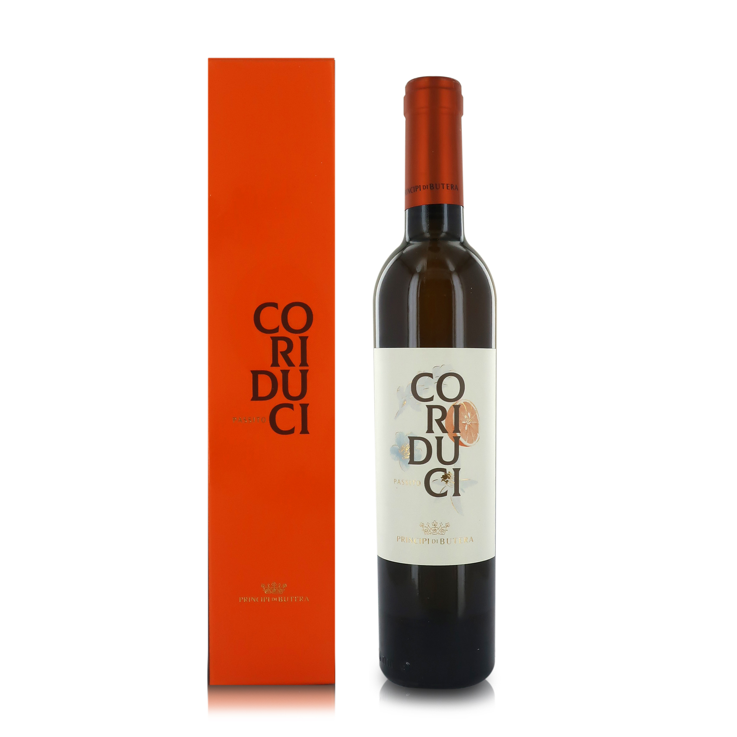 3 bottiglie da 375 ml l'una. Vino Passito "Coriduci" ottenuto da uve Moscato Giallo in comodo ed elegante astuccio, perfetto come idea regalo per gli amanti del passito. Il cuore dolce del Moscato dei Principi di Butera, in un passito che ha i profumi e la grazia dei fiori e dei frutti della Sicilia. Classificazione: Terre Siciliane IGT.