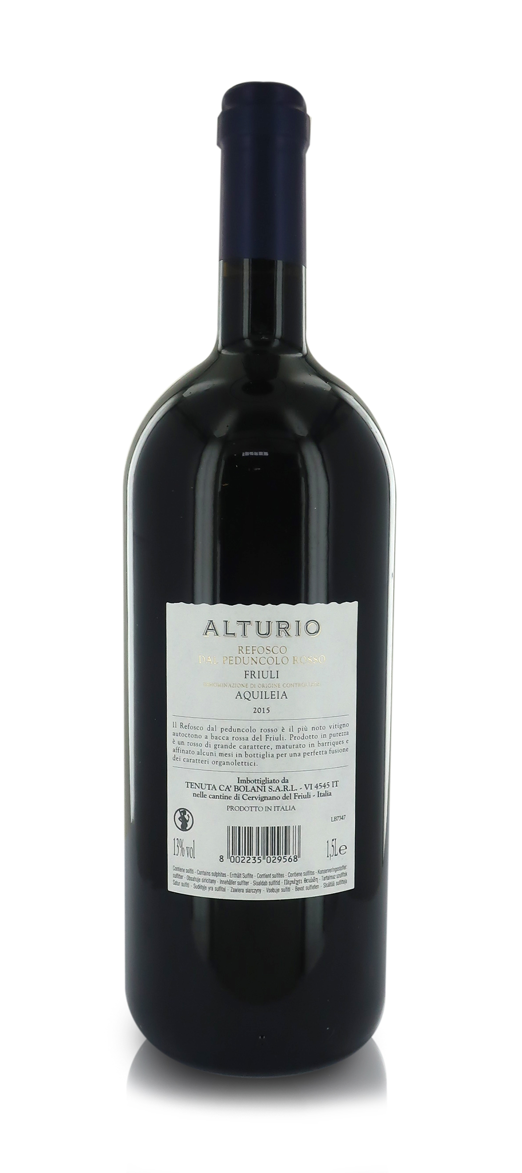 BOTTIGLIA MAGNUM da 1,5 lt in SCATOLA DI LEGNO. Dopo la pigiatura e la diraspatura, il mosto subisce un processo di fermentazione e macerazione di 8-12 giorni in acciaio, consentendo una considerevole estrazione di colore e di sostanze polifenoliche. Dopo la fermentazione malo-lattica, il vino matura in botti di rovere. Classificazione: Friuli DOC Aquileia / Zona di Produzione: Aquileia, Friuli / Uve: Refosco dal Peduncolo Rosso / Note di degustazione: Colore: intenso, brillante con note violacee. - Profumo: emergono sentori di visciole in confettura e spezie con leggere note erbacee e di resina. - Sapore: denso e fruttato che ben si contrappone a un’energica freschezza. I tannini sono morbidi e il finale è lungo e persistente. / Abbinamenti: ideale a tutto pasto. Si abbina con primi piatti con sughi, con piatti di carne in umido e formaggi di media e lunga stagionatura. Ideale anche come aperitivo o dopo cena. CONTIENE SOLFITI. ATTENZIONE: EVENTUALE INDICAZIONE DI ANNATA IN TESTI E/O FOTO È MERAMENTE INDICATIVA; L'ANNATA INVIATA, SOGGETTA A DISPONIBILITÀ, POTRÀ VARIARE DA QUELLA IN FOTO O NEI TESTI, SENZA QUESTO RAPPRESENTARE UN ERRORE O UN DIFETTO DELL'ORDINE. Ca' Bolani - Cervignano del Friuli, Udine, Italia. Percorsa da 999 cipressi che celebrano e proteggono una straordinaria biodiversità, Ca' Bolani è una tenuta dove la vite e la natura prosperano in perfetta sintonia. Incastonata tra le Alpi e il mare del Friuli a Aquileia, in un territorio dove la viticultura fu introdotta sin dall'epoca romana, la tenuta beneficia di condizioni ideali per la produzione vitivinicola: le brezze marine estive, la protezione offerta dalle Alpi, le forti escursioni termiche, la varietà dei terreni che digradando verso il mare. La tenuta vanta un patrimonio viticolo unico, un vero e proprio parco di vigne dal quale nascono vini da fragranza e pienezza aromatica distintive.
