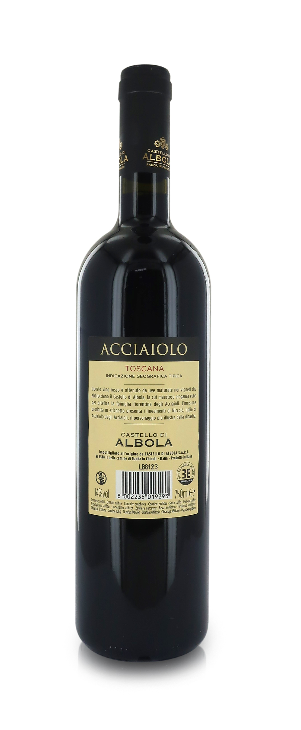 6 bottiglie di Acciaiolo Toscana IGT (750 ml l'una) in cassetta. Acciaiolo è un’interpretazione sontuosa della forza espressiva dei suoli attorno al Castello di Albola: da un unico vigneto di vecchie viti, una selezione rigorosa di uve Cabernet Sauvignon conferisce carattere e eleganza, mentre la piccola parte di Sangiovese ne tratteggia le sfumature più autentiche. Nel nome l'omaggio alla casata degli Acciaiuoli. Zona di produzione: Radda in Chianti, Chianti Classico / Uve: 80% Cabernet Sauvignon, 20% Sangiovese. / Metodo di allevamento: Cordone speronato. / Il mosto fermenta per 10 giorni ai quali seguono 15 giorni di macerazione. L’affinamento in barrique di primo e secondo passaggio dura 14 mesi, seguiti da ulteriori 12 mesi in bottiglia. / Note di degustazione - colore: grande concentrazione di colore rosso rubino; profumo: intenso con note di frutti di bosco, susina e liquirizia; sapore: ricco e elegante con una acidità fine e armoniosa e una ottima persistenza al palato. / Ideale con arrosti, brasati e selvaggina. Si accompagna bene con i formaggi stagionati dal sapore deciso. CONTIENE SOLFITI. ATTENZIONE: EVENTUALE INDICAZIONE DI ANNATA IN TESTI E/O FOTO È MERAMENTE INDICATIVA; L'ANNATA INVIATA, SOGGETTA A DISPONIBILITÀ, POTRÀ VARIARE DA QUELLA IN FOTO O NEI TESTI, SENZA QUESTO RAPPRESENTARE UN ERRORE O UN DIFETTO DELL'ORDINE. Il borgo medievale di Castello di Albola sorge in cima alle splendide colline chiantigiane. Dal 1979 è di proprietà della Famiglia Zonin, che da 40 anni le dedica le sue migliori cure. Insieme al recupero e al restauro della villa e del borgo, è stata edificata la nuova cantina, perfettamente armonizzata nel paesaggio circostante. La Famiglia Zonin si è anche impegnata per ampliare sia i vigneti che la fattoria, che oggi si estende per 900 ettari, di cui oltre 125 coltivati a vite e dove svettano oltre 4 mila piante di olivo.