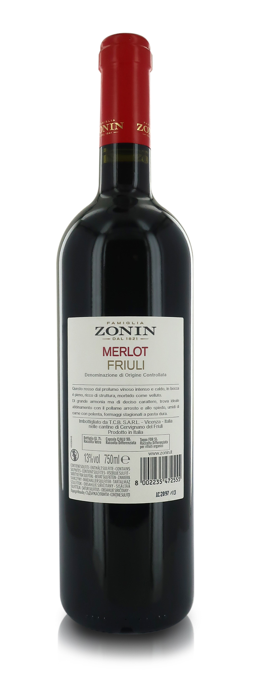 Zonin Vino Rosso Merlot Friuli D.O.C., 6 x 750Ml