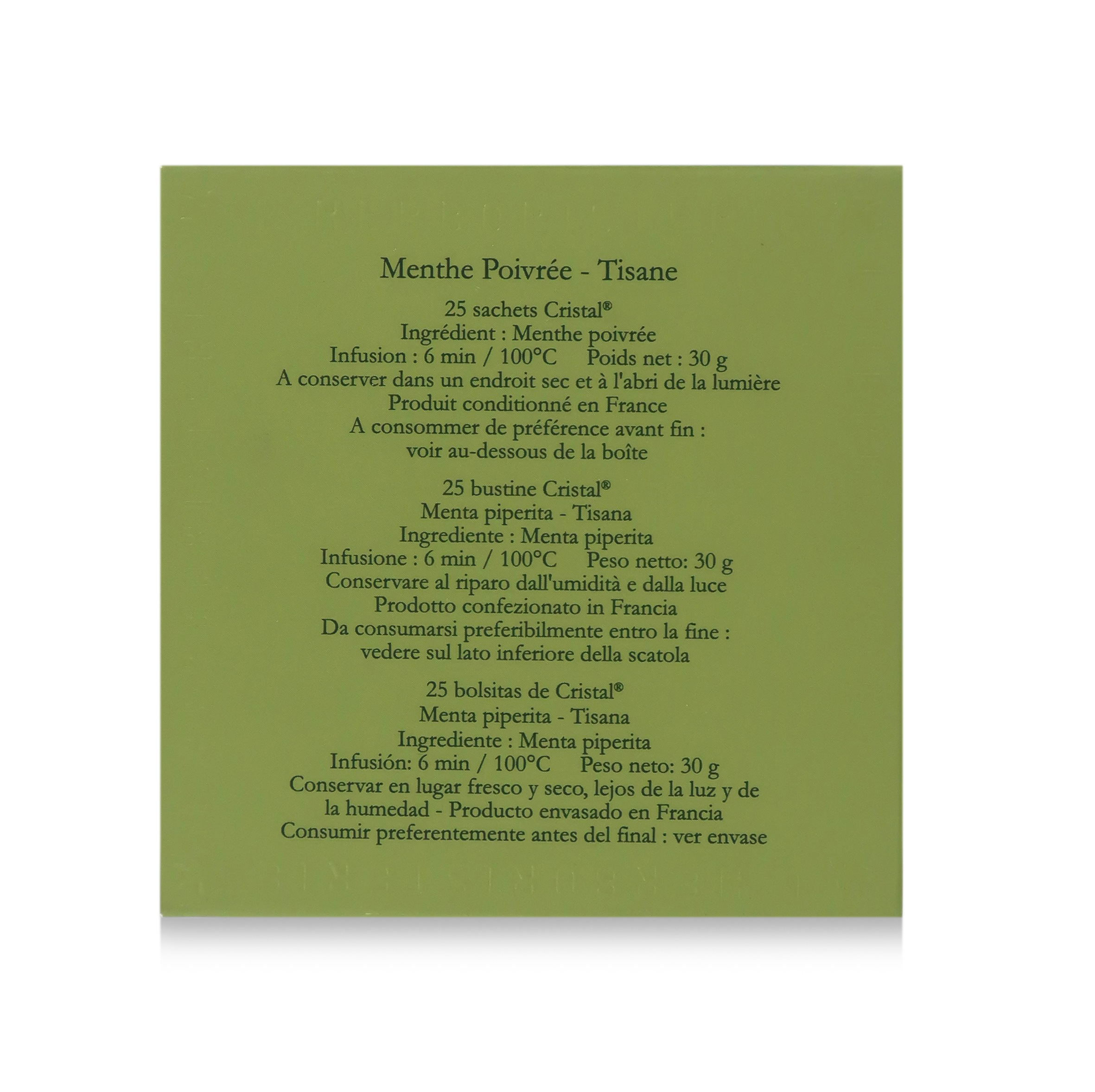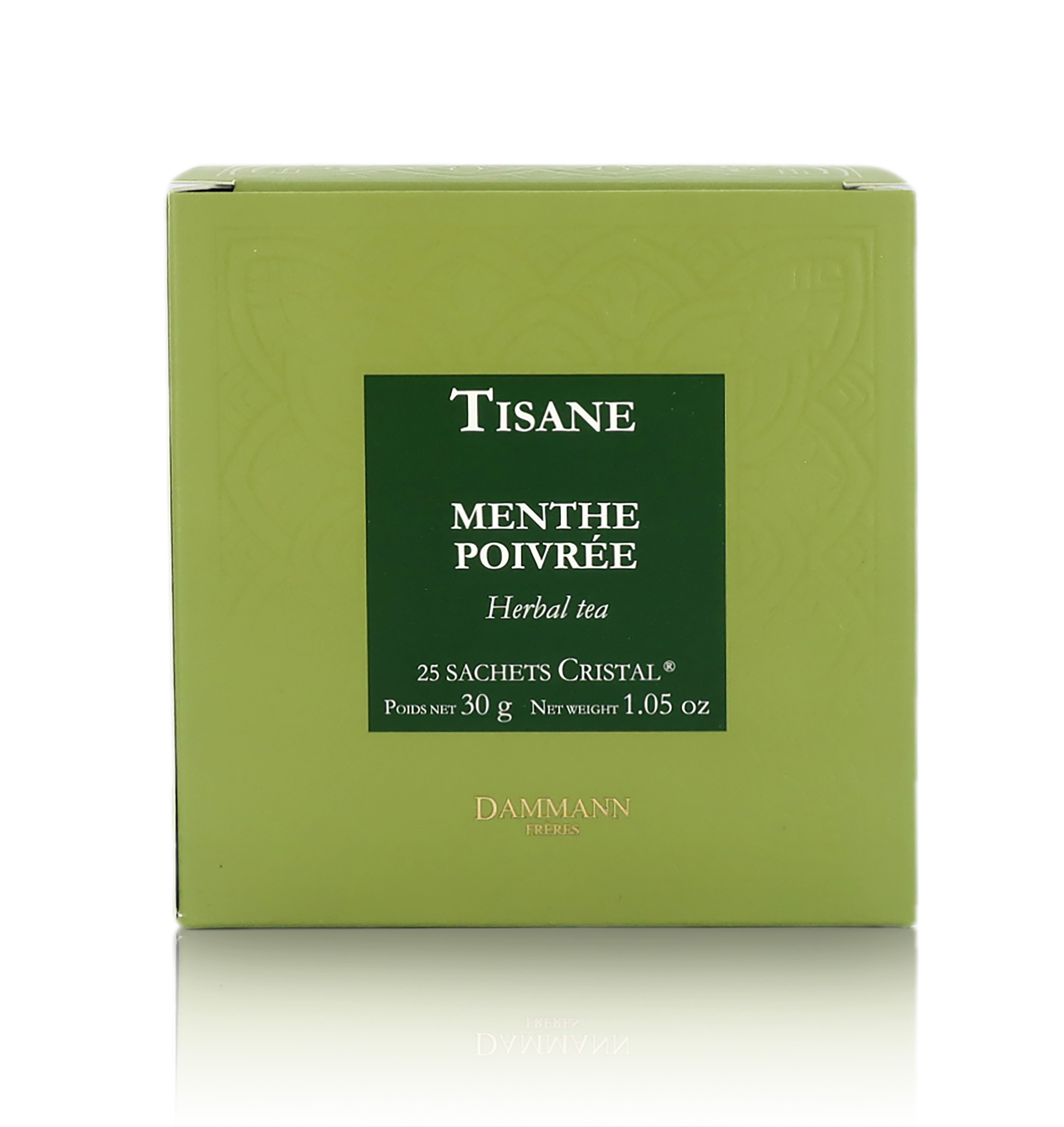 Questa tisana alla menta piperita di Dammann Frères è contenuta in eleganti e pratici filtri Cristal.