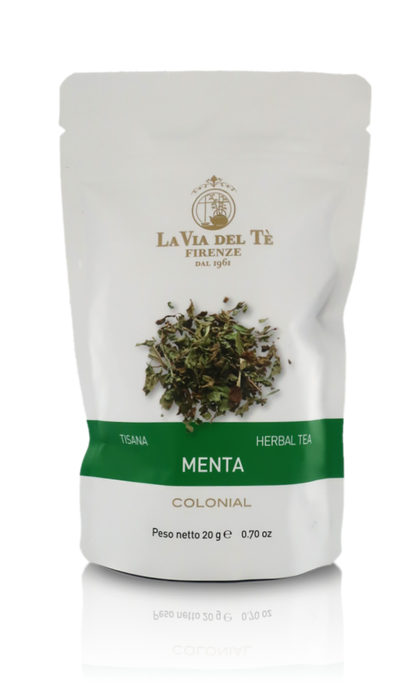 Miscela sfusa per la preparazione di tisana alla menta, realizzata con menta piperita e menta dolce. La menta piperita è conosciuta fino dall'antichità per le sue proprietà aromatiche, antispasmodiche, digestive e antisettiche. Le sue foglie sono impiegate per aggiungere aroma a tè, infusi e preparazioni gastronomiche. La tisana alla menta vanta un colore giallo chiaro, un aroma penetrante e un sapore dolciastro.