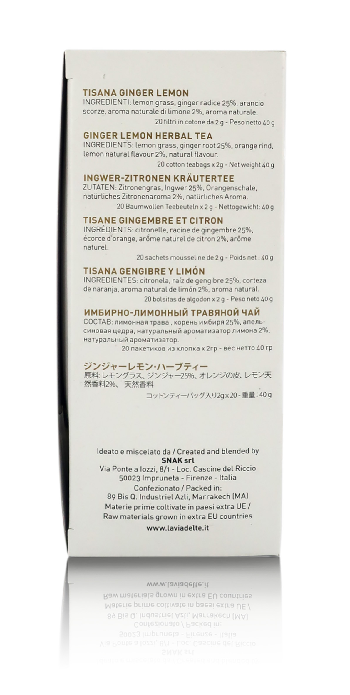 Tisana Ginger Lemon, Tisana Rivitalizzante alla Citronella e Zenzero, Astuccio con 20 Filtri da 2g - 40g