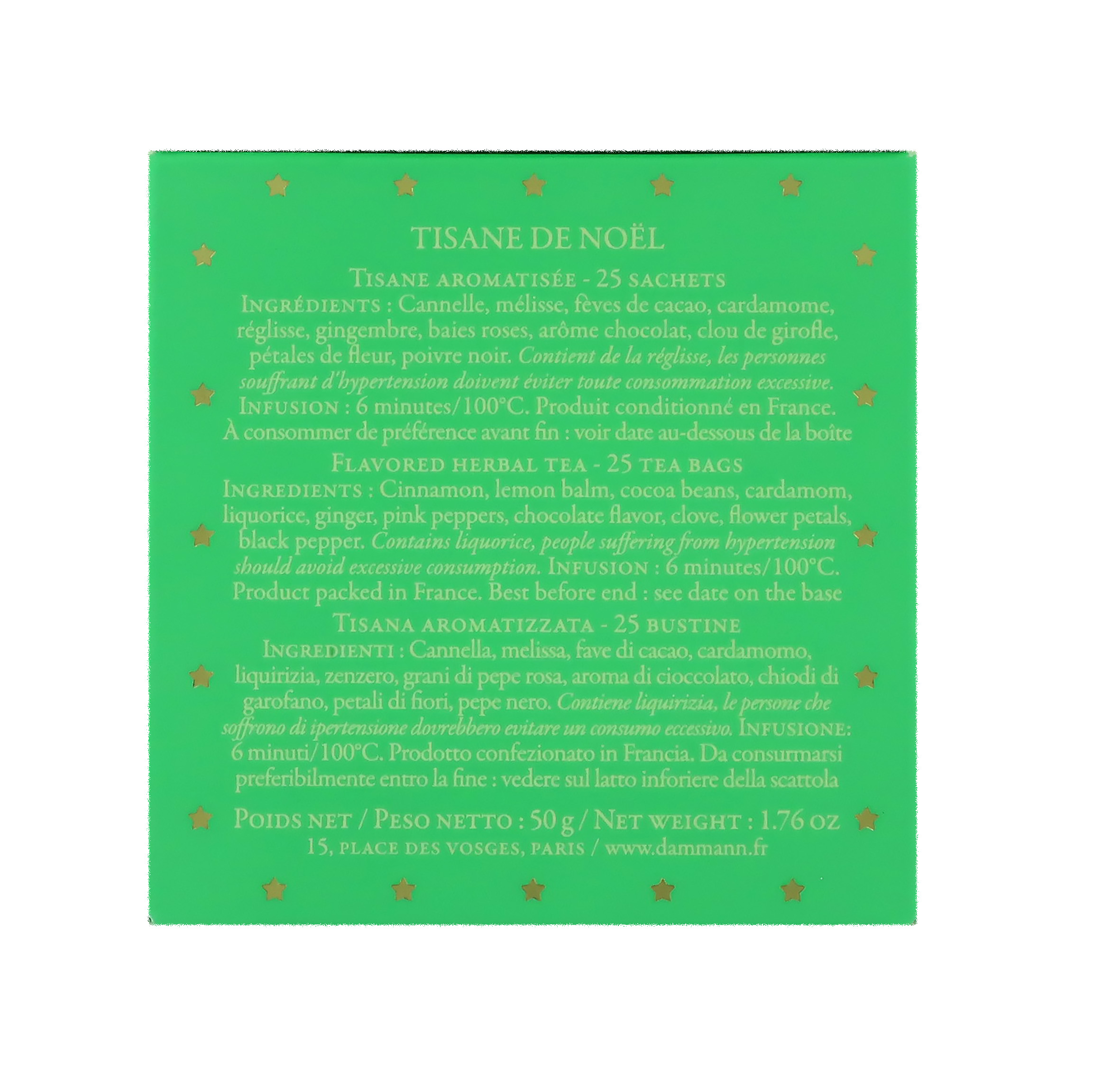Tisana Natalizia alle Spezie, Cannella, Liquirizia, Zenzero, Cacao - Infuso di Natale in Scatoletta Regalo, 25 Filtri, Tot. 50g, Dammann Frères