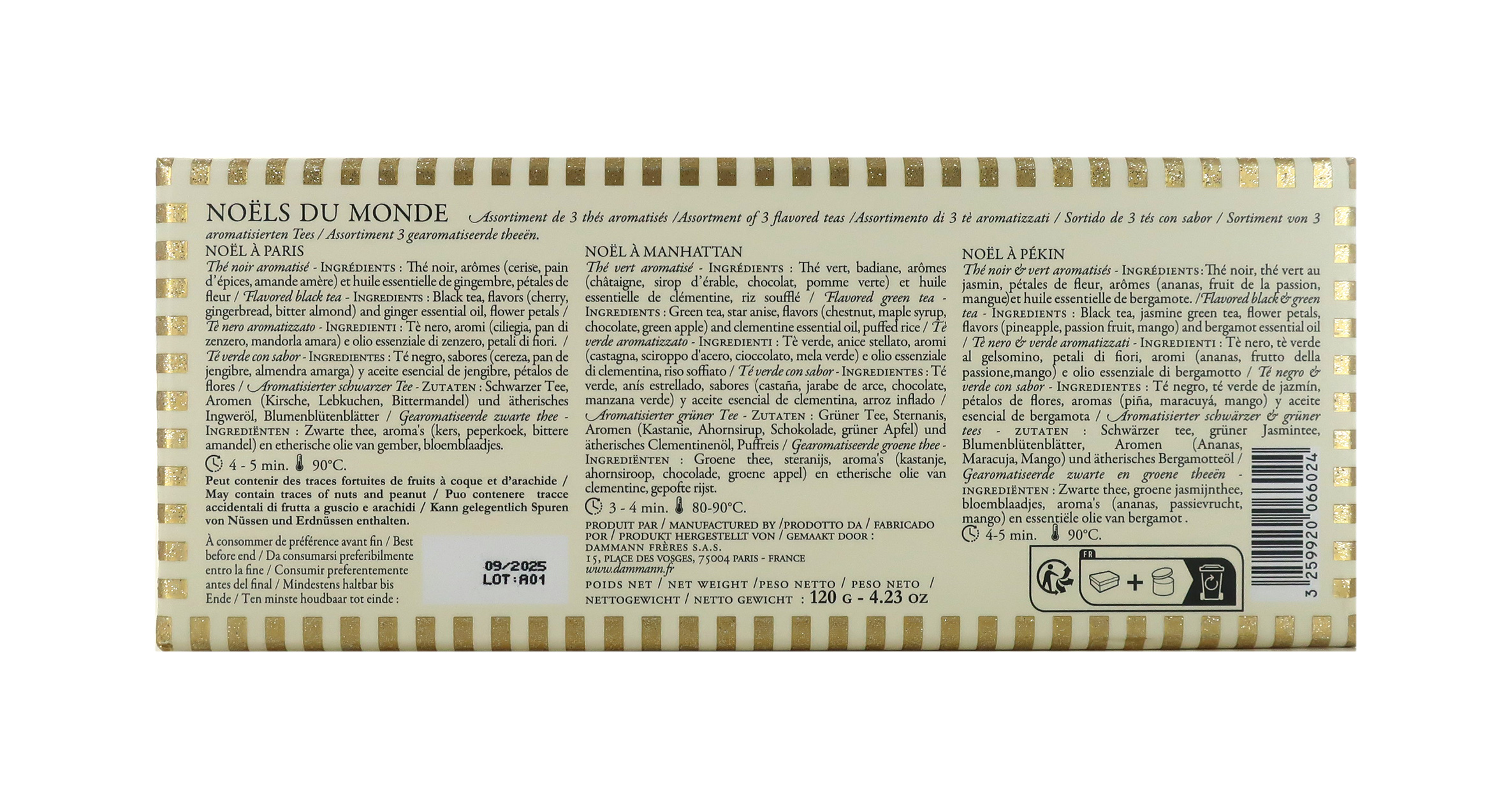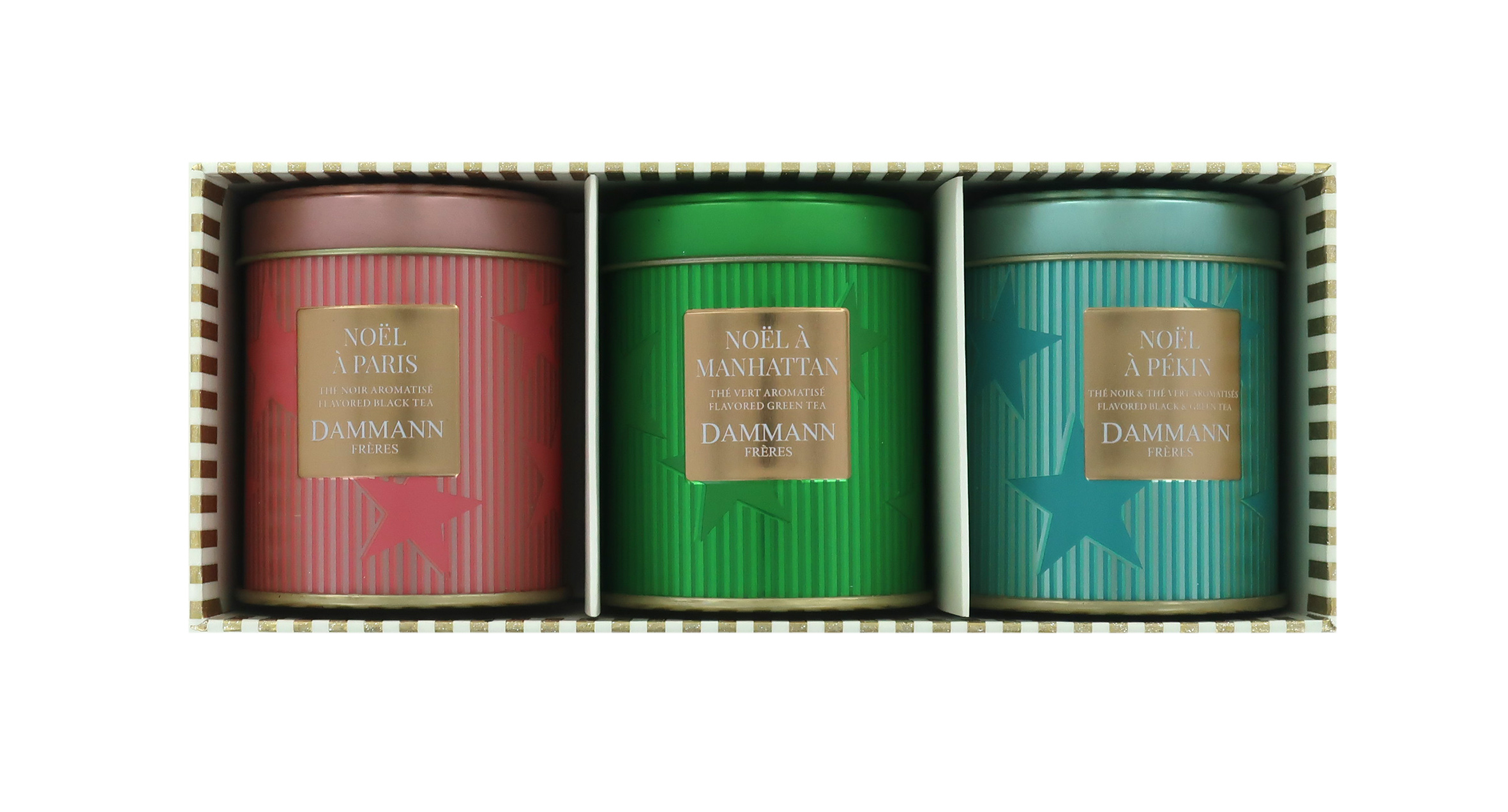 Cofanetto con 3 Latte di Tè di Natale ''Noëls du Monde'', The Natalizi Fruttati, 120g, Dammann Frères