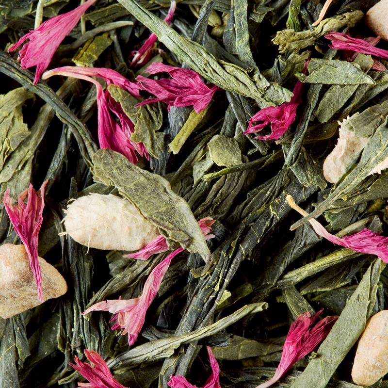 Tè N° 477 - Miss Dammann, 30 g. Ingredienti : Tè verde, pezzi di zenzero, olio essenziale di limetta e aroma di frutto della passione, petali di fiori. //