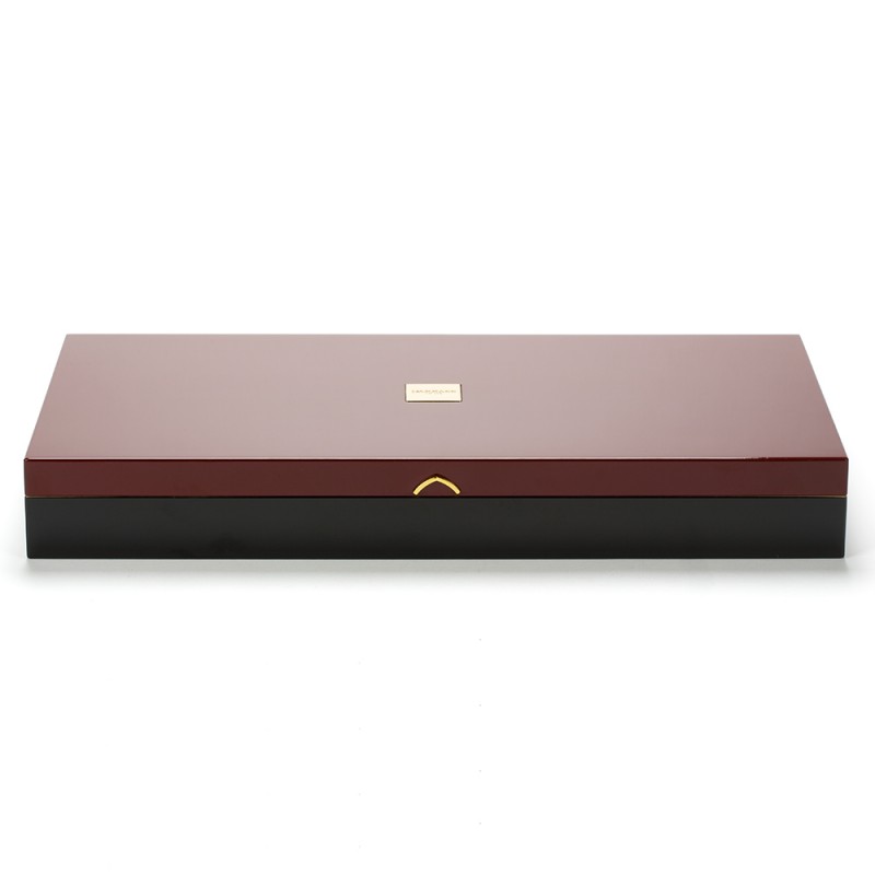 Elegantissima confezione regalo in legno laccato rosso e nero con un'ampissima selezione di tè pregiati. La scatola contiene una clessidra per la preparazione del tè e 18 barattolini di latta, in ognuno dei quali è contenuta una variante diversa di miscela per tè: