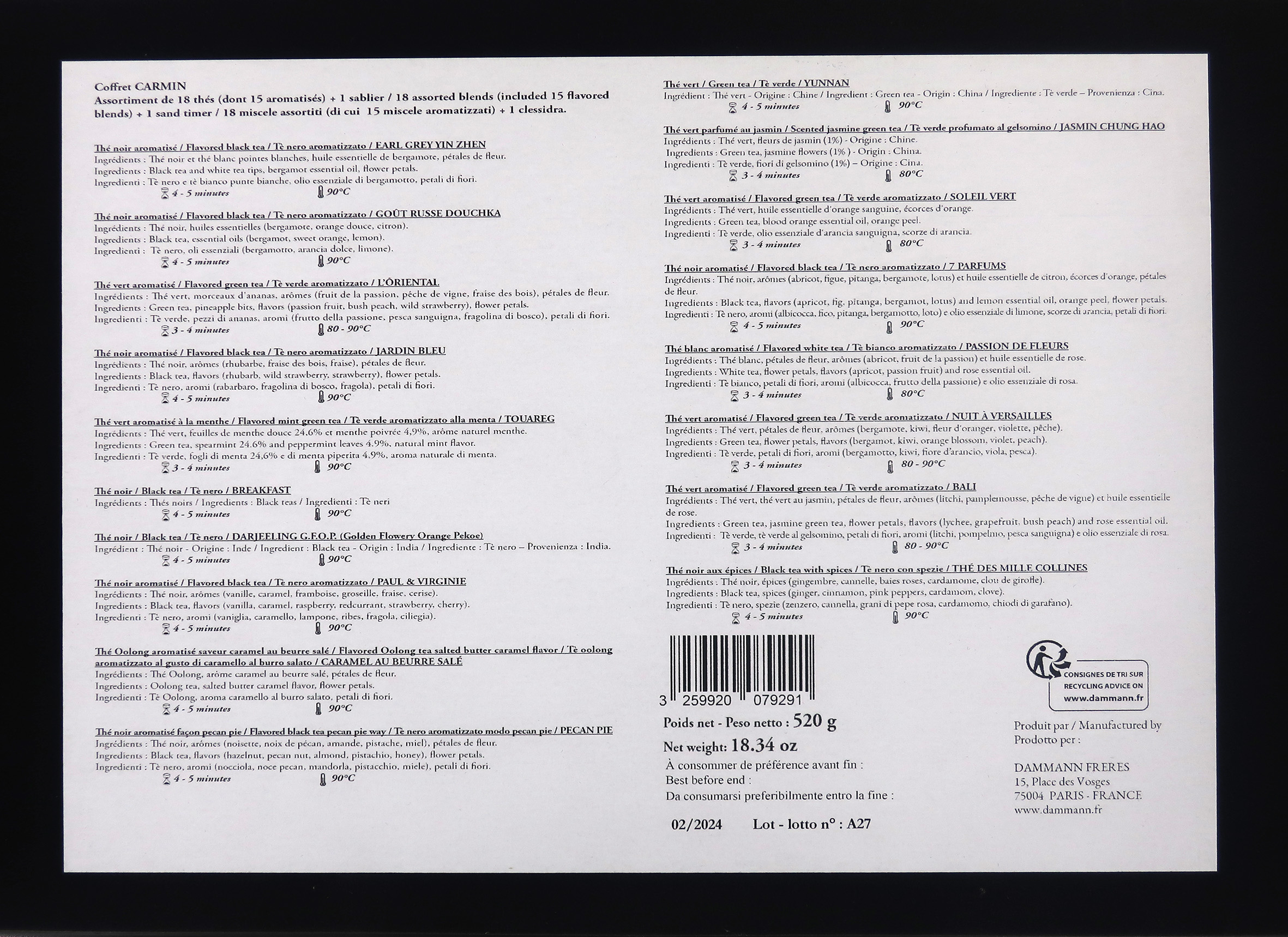 Confezione regalo Tè Dammann "Carmin", Cofanetto Regalo con Tè Assortiti Aromatizzati alla Frutta, 520 grammi, Dammann Frères
